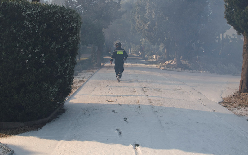Oko 13,30 na teren je izašla malobrojna pričuvna ekipa kojoj je samo uspjelo spasiti Gradsku mrtvačnicu jer su njenim olucima već počele gorjeti nakupljene suhe borove iglice. Dok je pričuvi stiglo pojačanje vatra je već zahvatila oko dva hektara borove šume i ugrozila najbliže kuće, no na sreću na vrijeme je pozvana zračna potpora pa su dva kanadera do trenutka kada ovo pišemo (oko 17 sati) već izvela tridesetak naleta, a izgleda da će gasiti sve dok im to svjetlosni uvjeti budu omogućavali pa će zajedno s jedinicama na tlu požar najvjerojatnije do noći biti pod kontrolom.