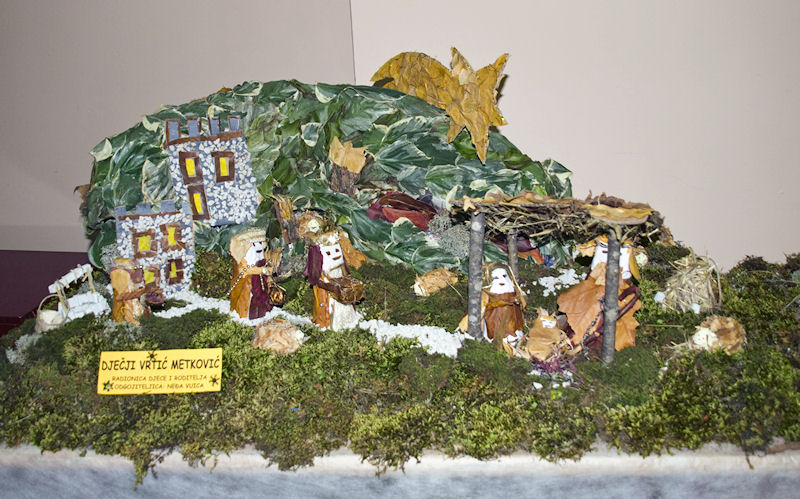 Osim tri već viđena izloška svi ostali izloženi su prvi put, počevši od pola stoljeća starih jaslica Joze Ivankovića pa preko zanimljivih radova Doma za smještaj i rehabilitaciju Metković, Udruge osoba s invaliditetom 'Prijatelj' Metković te djelatnika i korisnika Programa 'Dnevni boravak i pomoć u kući starijim osobama' što ga provodi Ministarstvo obitelji, branitelja i međugeneracijske solidarnosti. Tu su i jaslice izrađene od lišća i prirodnih materijala koje su izradili roditelji i djeca iz Dječjega vrtića Metković, a ostalo su privatni izlošci Marija Mijića, Ivice Puljana, Ivana Popovića i Ivana Sutona, Mate Mustapića, Ivane Baće, Katice Martinac i Nikice Korice.