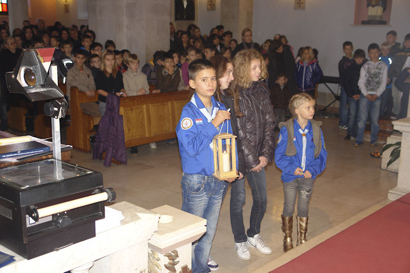 Metković, 18.12.2011. - U crkvu Sv. Ilije danas je stiglo Betlehemsko svjetlo mira, a donijeli su ga metkovski izviđači iz Udruge izviđača Neretvanski gusar koji su ga jučer preuzeli u katedrali Uznesenja BDM (Sv. Duje) u Splitu.