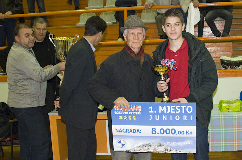 Metković, 27.12.2011. - U gotovo potpuno ispunjenoj Gradskoj športskoj dvorani odigrana je završnica Božićnoga malonogometnog turnira Metković 2011 na kojemu je ove godine slavila HVIDRA Mostar u seniorskoj i Franck Grude u juniorskoj konkurenciji.