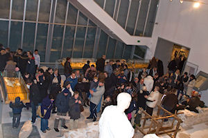 Evo i jedne primjedbe projektantu. Rako nije računao da bi se kroz uski ulaz u muzejski prostor (i isto tako uske stube (ili skale) moglo penjati više od nekoliko ljudi istovremeno. Jedni se penju, drugi silaze, kći pridržava staroga oca koji hodajući rešetkastim podom štapom pokušava ubosti na sigurno.