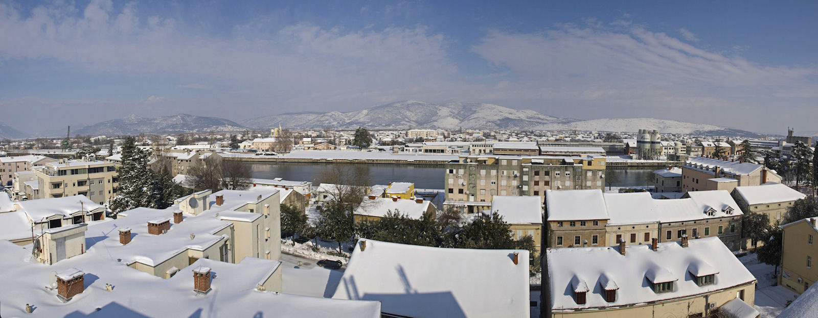 11.2.2012. - Novi snijeg noćas je ponovno zabijelio grad, a nakon toga ga je obasjalo sunce. Pravo vrijeme za sve one koji se ovih dana ne odvajaju od fotoaparata. Mi smo, između ostaloga, načinili i četiri panorame grada pod snijegom. Ako imate monitor manje rezolucije nakon klika na njih možete ih tipkom F uvećati na stvarnu veličinu.