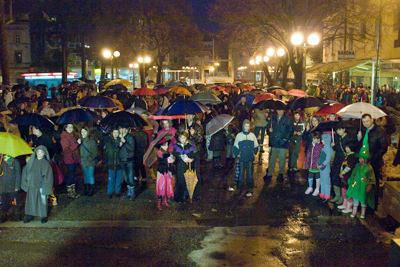 21.2.2012. - Nekoliko tisuća maškaranih okupilo se večeras na Trgu kralja Tomislava kako bi u krajnje napetoj atmosferi pratilo suđenje Marku Krnjevalu kojega se tereti za sve što nas je snašlo protekle godine, uključujući i ovogodišnji lanjski snijeg.