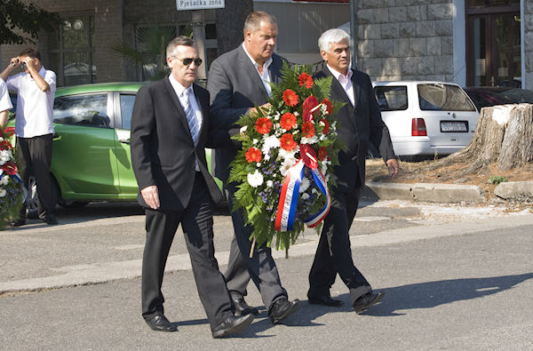 Vijence su položili gradonačelnik Gabrić sa svojim zamjenicima, predstavnici političkih stranaka i udruga proizašlih iz Domovinskoga rata. Prije toga su pred Središnjim križem na Gradskom groblju sv. Ivana Nepomuka također položeni vijenci i upaljene svijeće, a za sve poginule branitelje i civilne žrtve kratak vjerski obred održao je župnik župe sv. Ilije fra Petar Gulić.