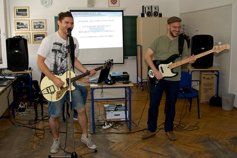 Četrdesetak učenika sedmih i osmih razreda je uz pomoć glazbenika učilo pisati svoje pjesme koje su zatim izvodili uz glazbenu pratnju. Osim dobre zabave učenici su kroz univerzalan jezik glazbe doživjeli učenje njemačkog jezika u posve novom, dinamičnom i neuobičajenom ozračju. U sklopu radionice glazbenici su učenicima priuštili i pravi rock koncert izvevši im neke od svojih pjesama.