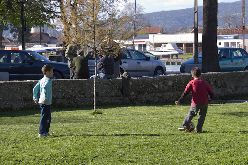 Metković, 6.4.2013. - Današnji 21 stupanj na toplomjeru i lijep dan kao da je tjednima daleko od kiša i poplave, a prošlo je samo tri dana. Danas je park bio pun djece i šetača, a neki su mir potražili i uz samu Neretvu.