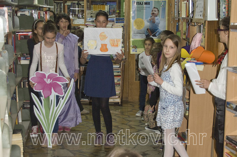 Program za djecu započeo u 18 sati čitanjem bajki naglas predškolcima i učenicima nižih razreda osnovne škole. Time je prigodno promovirana UNICEF-ova kampanja naziva Čitaj mi! kojom se roditeljima skreće pozornost da je samo 15 minuta čitanja naglas djeci dnevno dovoljno da se kod njih probudi ljubav prema knjizi. Nakon čitanja bajki izvedena je predstava Prošlost i sjećanja koju je osmislila ravnateljica Vesna Vidović, a realizirana je zahvaljujući pomoći odraslih članova i prijatelja knjižnice. O tome kako je nastao i kako se razvijao grad Metković, s naglaskom na kulturne ustanove pokazalo je trinaest malih glumaca uzrasta od šest do 10 godina. Zadnja aktivnost za djecu bio je Hlapićev labirint po kojem su se djeca snalazila koristeći se porukama ispisanim uz crteže s likovima i motivima iz knjige Čudnovate zgode šegrta Hlapića. Hlapićev labirint samo je jedna od aktivnosti koje će Gradska knjižnica Metković provoditi tijekom cijele godine u okviru obilježavanja 100. godišnjice od prvoga objavljivanja tog dječjeg romana hrvatske književnice Ivane Brlić-Mažuranić. Dječje aktivnosti završene su projekcijom filama Koko i duhovi.