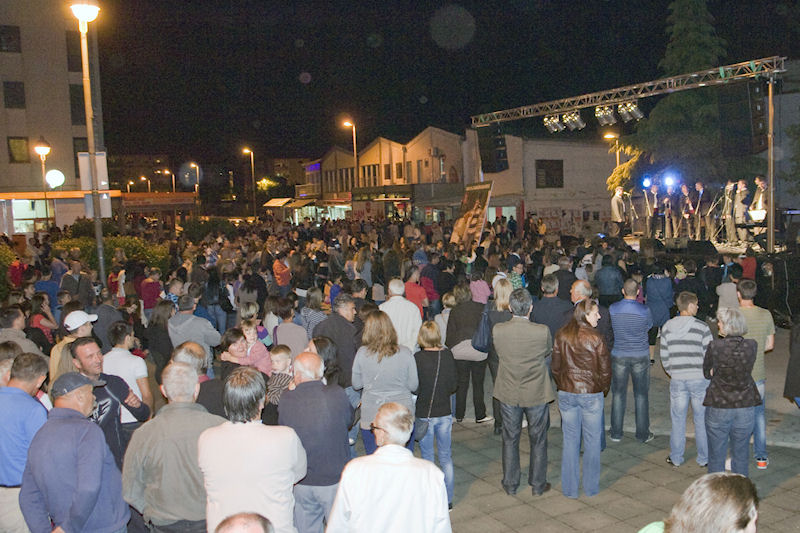 17.5.2013. - Na Trgu dr. Franje Tuđmana sinoć su u organizaciji GO HSS-a održani koncerti na kojima su nastupili Klapa Cambi i Ivan Zak. Na prvome je starija publika uživala u dalmatinskoj klapskoj pjesmi, nakon čega su prostor pred pozornicom, ali i na pozornici, osvojili tinejdžeri koji su oduševljeno reagirali na svaku otpjevanu pjesmu Ivana Zaka. Ni kiša koja je prijetila tijekom cijeloga koncerta nije okupljene spriječila da ostanu do kasnih noćnih sati.