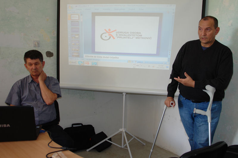 Metković, 6.6.2013. - Danas je u Udruzi osoba s invaliditetom Prijatelj u studijskoj posjeti boravilo četrdesetak sudionika Projekta SLID (Socijalna i radna integracija osoba s invaliditetom). Posjetu su organizirali hrvatski partneri na Projektu: MUOSID (Mreža udruga osoba s invaliditetom Dalmacije), DES - Ustanova za zapošljavanje rad i profesionalnu rehabilitaciju osoba s invaliditetom te Splitsko-dalmatinska županija.