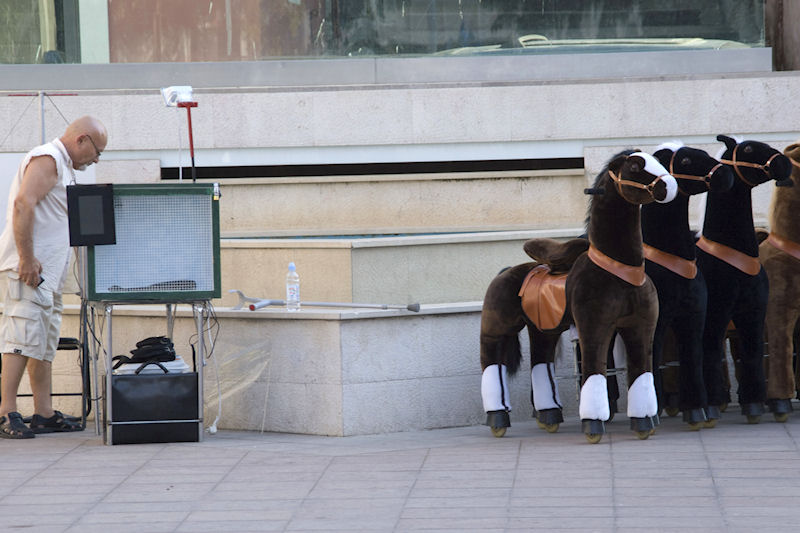 19.7.2013. - Trg i okolno područje pomalo poprima svoj prepoznatljiv izgled, sukladan sutrašnjem Blagdanu. Čini se da će štandova biti nešto manje. Je li tome kriva kriza ili mala crna naprava u lijevome kutu fotografije s konjima, koju je vlasnik obrta izvjesio – Liniću ne trebalo. Ujutro ćemo otići vidjeti pošto fiskalizirana janjetina.