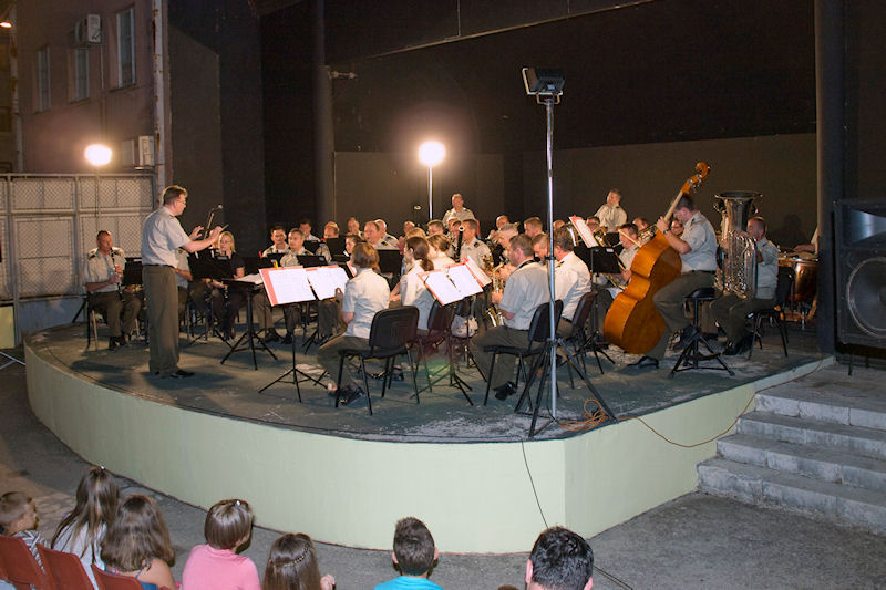 Metković, 24.7.2013. - Metkovskoj se publici sinoć na Ljetnoj pozornici Gradskoga kulturnog središta predstavio Simfonijski puhački orkestar Oružanih snaga Republike Hrvatske pod ravnanjem bojnika Miroslava Vukovojca Dugana.
