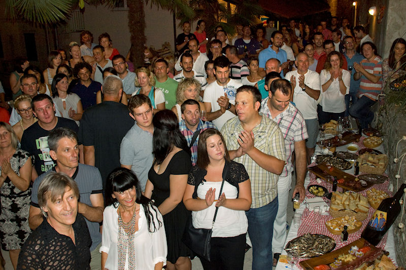 Nakon što su prikazani promotivni videomaterijali firma Kulina, Poljopromet i Bombo, koje su za domjenak darovali pršut, vino i maslinovo ulje, okupljeni su kao uvod mogli progledati videospotove prethodnih uradaka grupe Versi. Potom je premijerno prikazan najnoviji videospot koji je sniman na više dalmatinskih lokacija i koji se od noćas nalazi na YouTubeu.