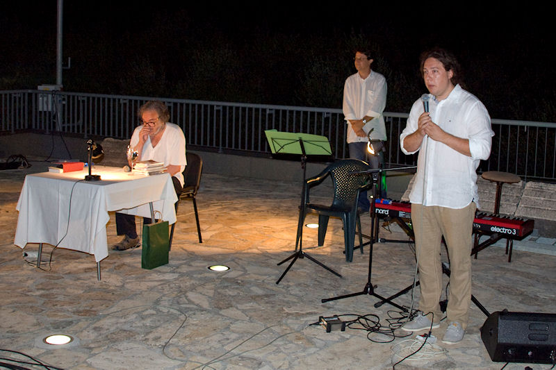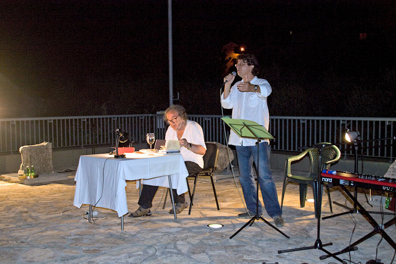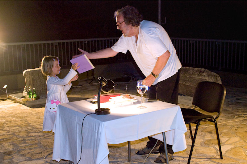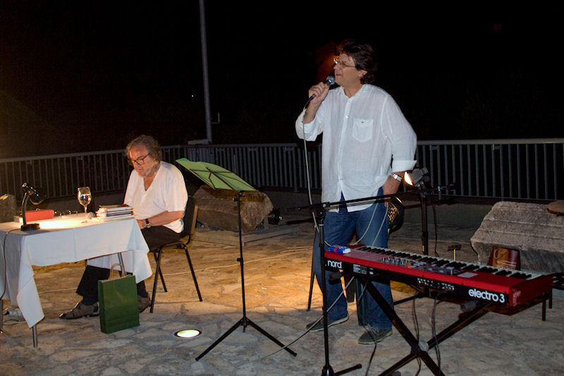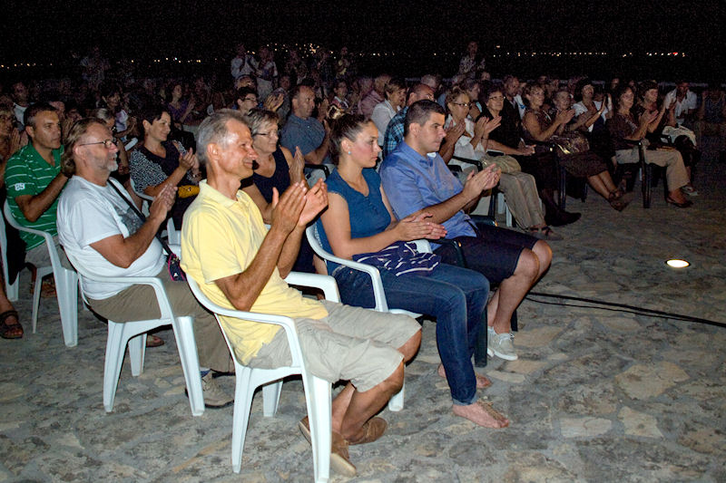 Stotinjak stolica na terasi bilo je premalo za sve koji su došli čuti Paljetka, majstora riječi, ali i izražajnoga govornika svojih stihova. Domaća publika imala je prigodu prva čuti dvije nove Paljetkove pjesme koje je, inspiriran prostorom antičke Narone, posvetio carici Liviji. Treća nova pjesma nastala je u vrtu Darkove bake Ruže koja je i sama došla poslušati Luka i Darka te joj je Paljetak predao prigodan dar.