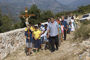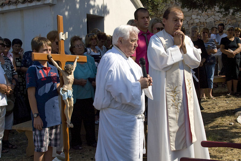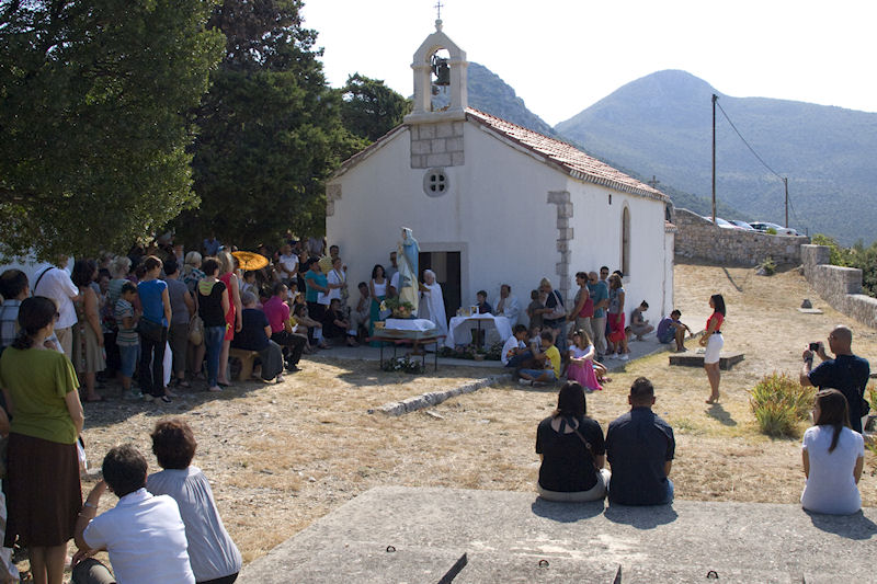 16.8.2013. - Blagdan Uznesenja Blažene Djevice Marije posebno se slavi u dolini Neretve i rubnim područjima na nekoliko mjesta. Mi smo jučer otišli na brdo Obličevac u Istočnoj Plini gdje je pred bivšom župnom crkvom Velike Gospe, koja se u crkvenim maticama spominje još 1773., misno slavlje prevodio i propovijedao nekadašnji župnik u župi sv. Ilije fra Mario Jurišić.