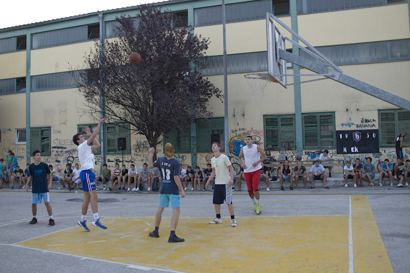 Metković, 18.8.2013. - Sinoć je na gimnazijskome košarkaškom igralištu održan 17. Streetball turnir na kojemu su nastupile samo četiri ekipe pa se igralo po načelu svatko protiv svakoga, a dvije najbolje ekipe odigrale su finalnu utakmicu.