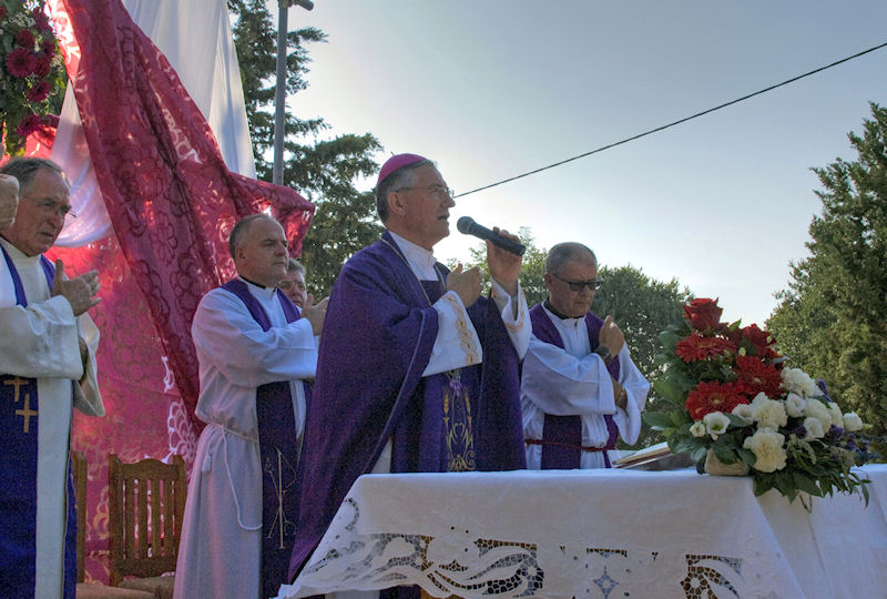 Ovo nije ideološki spomenik, ovo je znak slobode. Sve su žrtve jednako vrijedne, zato bih želio da budemo manje opterećeni ideologijom a više istinom, poviješću i objektivnošću. Nije dobro samo žrtve fašizma, nacizma, prebrojiti, naći, popisati. Nema mira, nema uskrsnuća, nema izlaska iz tame povijesti bez objektivne istine i poštenja; tek tad sve možemo pomiriti i možemo gledati u budućnost u slobodi. Isus Krist najveći je spomenik za sve žrtve. On je ušao u sve jame, u sve rudnike, sve skrivene muke i patnje, svojim uskrsnućem dao ostvarenje i puninu života. Bila je to jasna biskupova poruka razjedinjenome hrvatskom narodu opterećenome prošlošću upravo stoga što se o mnogim događajima još uvijek šuti.