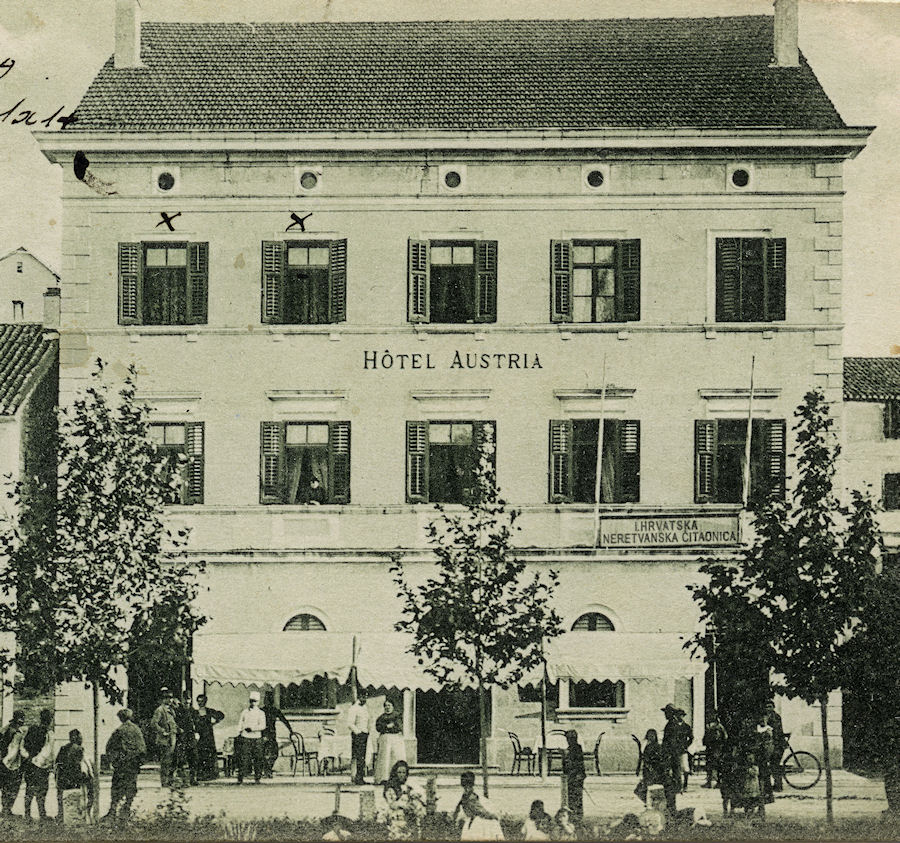 Ne zna se točno gdje je Čitaonica prvotno bila smještena, ali kada je napravljen Hotel Austria preseljena je u tu najreprezentativniju zgradu u Metkoviću.