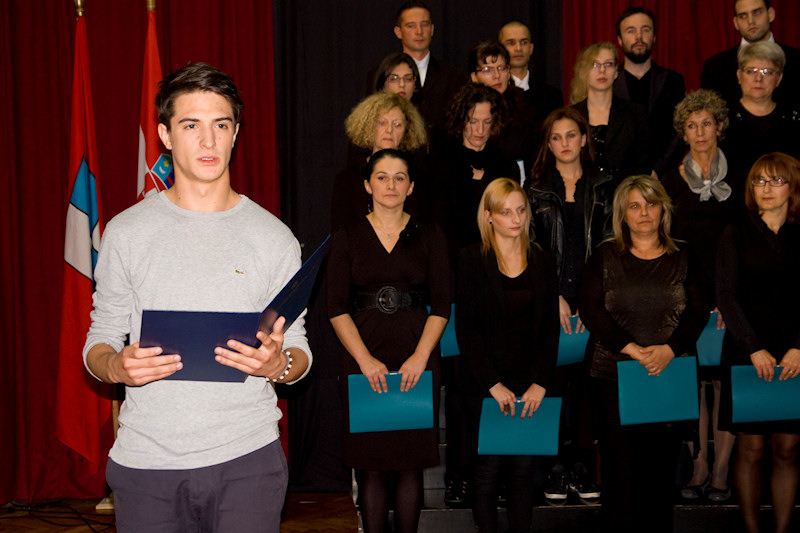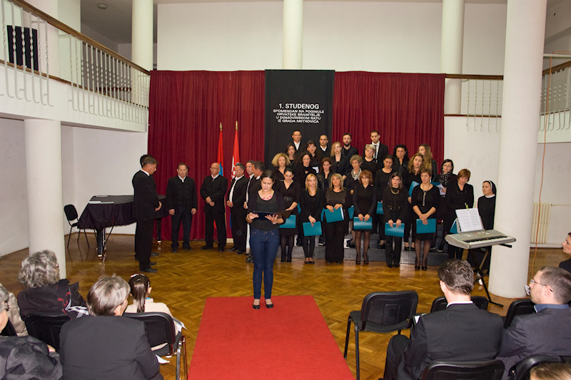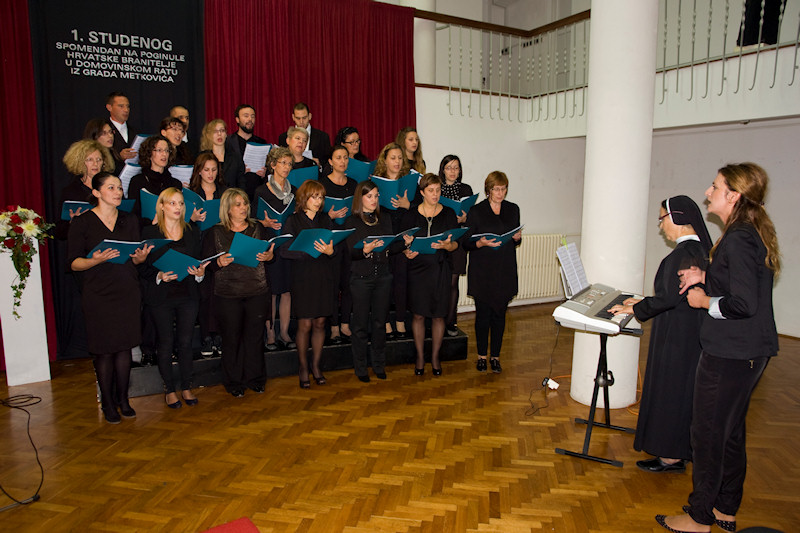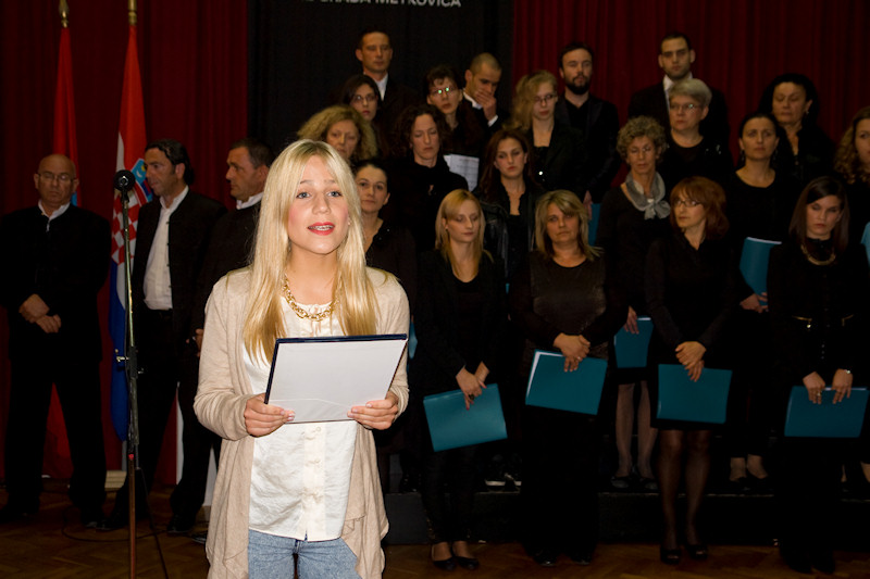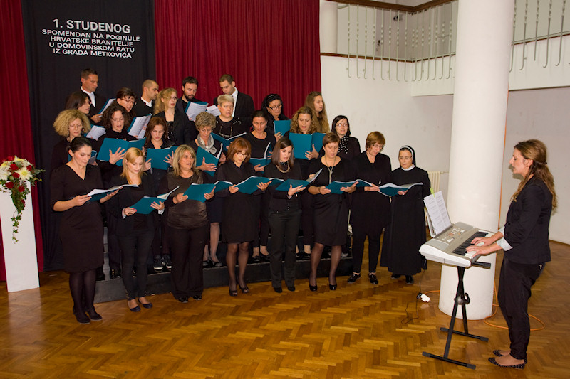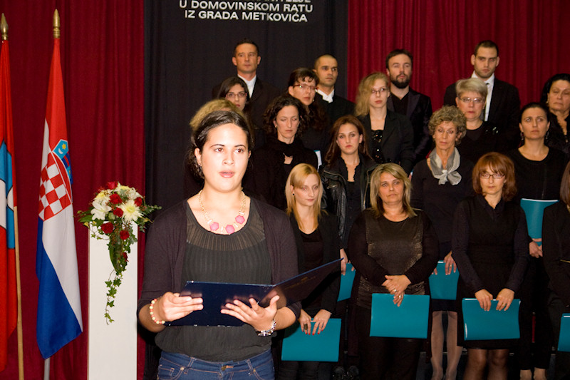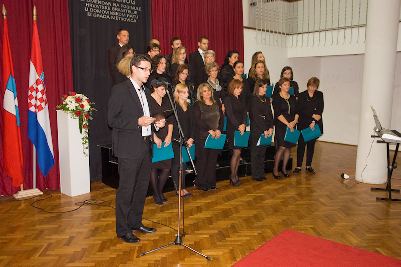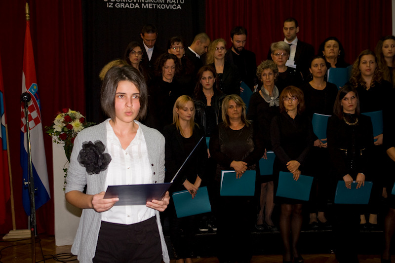 Metković, 1.11.2013. - U Galeriji metkovskoga GKS-a sinoć je u organizaciji Grada Metkovića i Udruge roditelja i udovica poginulih branitelja obilježen Spomendan na poginule hrvatske branitelje u Domovinskome ratu iz grada Metkovića. Nakon što se njihove žrtve i njezina značenja prisjetio gradonačelnik Božo Petrov izveden je prigodan komemorativni program u kojemu su pjesmom sudjelovali Župni zbor Župe sv. Ilije i Klapa Sveti Nikola, a recitacijama učenici Gimnazije Metković Iva Jadreško, Martina Živkušić, Ante Marević i Andrea Jerković.