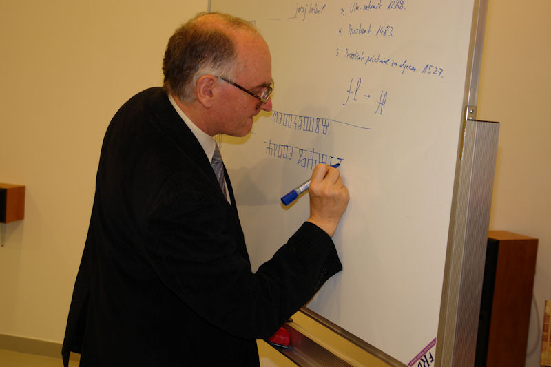 Metković, 10.11.2013. - Sinoć je u Gradskoj knjižnici Metković održano zanimljivo predavanje pod nazivom Hrvatska glagoljaška bašćina u kontekstu europske kulture s kratkim tečajem glagoljice. Održao ga je dr. sc. Dark Žubrinić, prof. matematike na Fakultetu računarstva i elektrotehnike u Zagrebu i priznati stručnjak za glagoljicu koji je jedan od osnivača Društva prijatelja glagoljice.