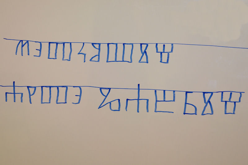 Kako za tečaj glagoljice nije bilo vremena, dr. Žubrinić na tabli je ispisao nekoliko riječi kako bi prisutnima objasnio osnovna pravila pisanja glagoljice, a na kraju je glagoljicom ispisao imena Metković i Ante Gabrić, misleći na našeg misionara o. Gabrića kojemu se, kako je rekao, istinski divi.