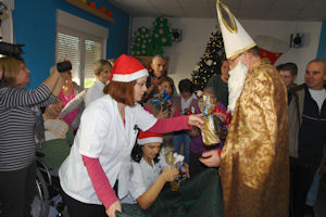 5.12.2013. - Sveti Nikola danas je posjetio Dom za starije i nemoćne osobe i tjelesno ili mentalno oštećene osobe, gdje su mu štićenici Centra za rehabilitaciju, koji djeluje u okviru Doma, izveli prigodan program.