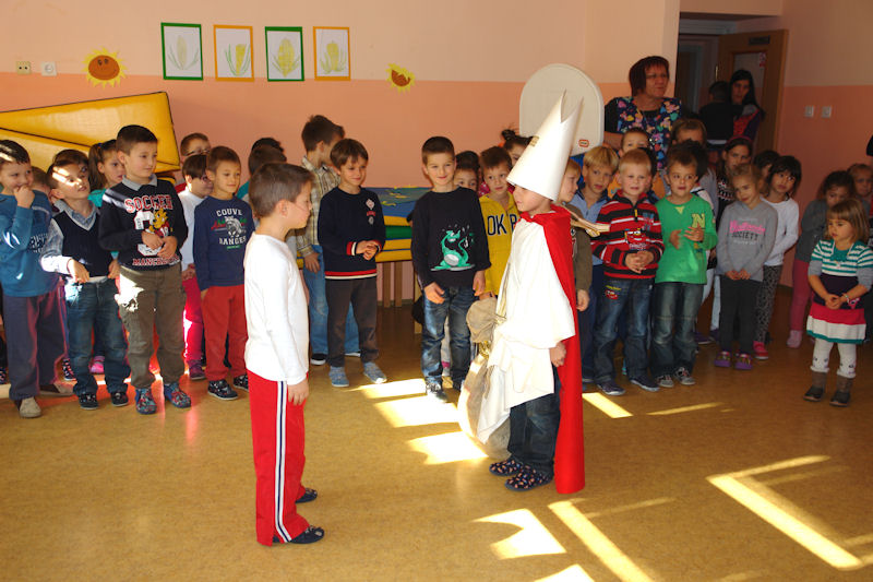 Doček sv. Nikoli u Središnjem vrtiću upriličen je u športskoj dvorani, a djeca su mu recitirala i pjevala pa i prigodno glumila. Na kraju je sv. Nikola sve mališane nagradio slatkišima.