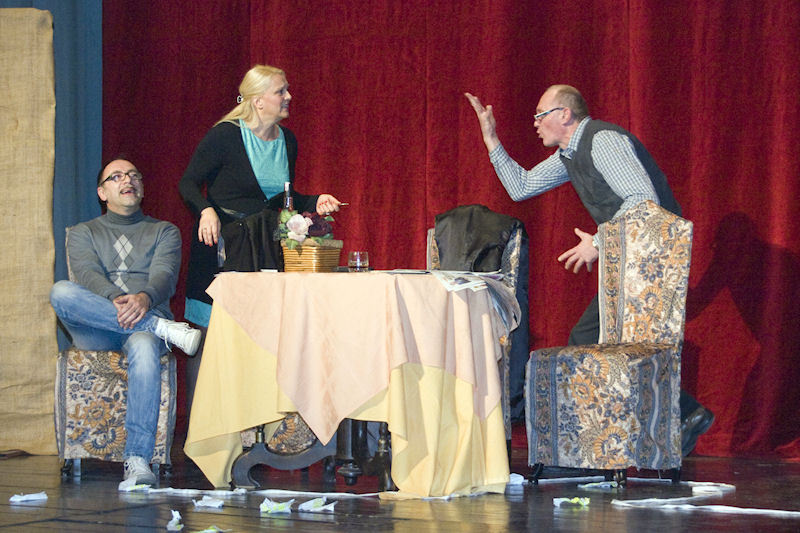 15.12.2013. - Metkovsko amatersko kazalište sinoć je u režiji Gorkoga Dumanića premijerno izvelo predstavu Milana Grgića Ne daj se Njofra, laganu komediju koja govori o smiješnim odnosima unutar jedne obitelji u kojoj se dogodila promjena.