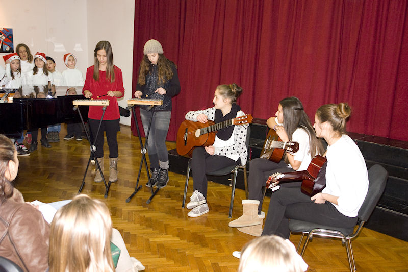 Repertoar je, naravno, bio božićni pa su se, između ostalih, mogle čuti domaće pjesme Tri kralja jahahu, Kyrie eleison, Tiha noć i Veseli se Majko Božja te strane True colors i Jingle Bell rock, dok su instrumentalisti odsvirali Little drummer boy, Knockin' on a heavens door i druge.
