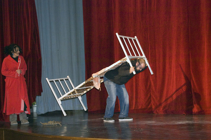 20.12.2013. - Glumci Amaterskoga kazališta Opuzen Suzana Dragobratović Mušan, Robert Babić i Tomislav Herceg sinoć su u Gradskom kulturnom središtu Metković odigrali predstavu Zimski prostor prema drami Tončija Petrasova Marovića i u režiji Velimira Ključe. To je bila posljednja kazališna predstava u sklopu Prosinačkih svečanosti 2013. koje se sutra u 19 sati nastavljaju koncertom Mandolinskoga orkestra KUD-a Metković u Galeriji GKS-a.