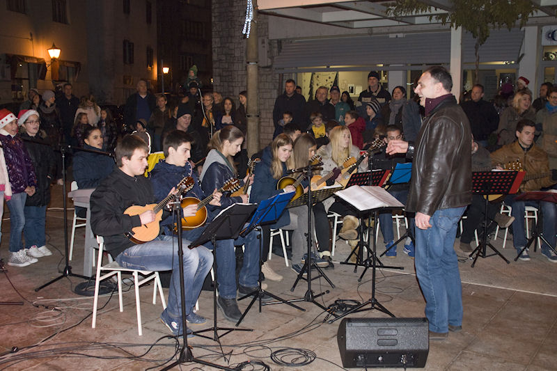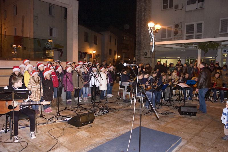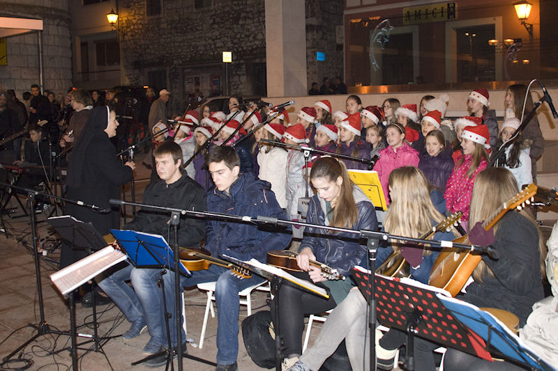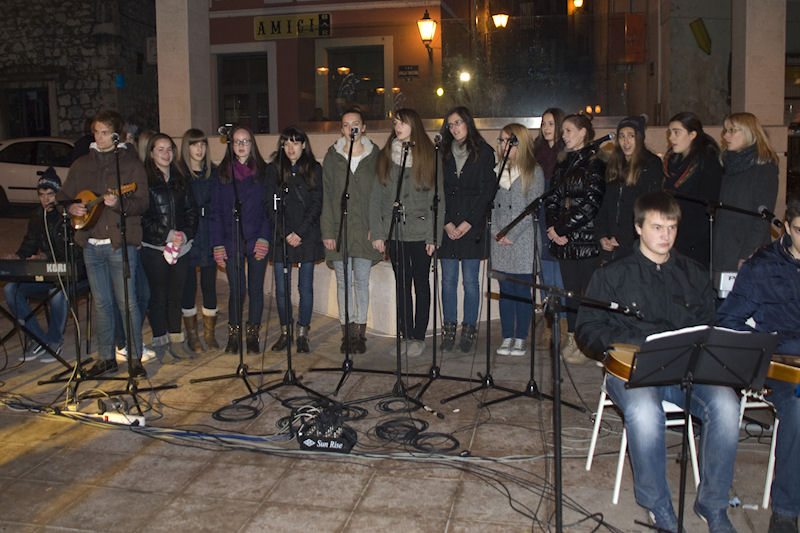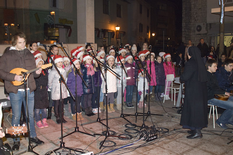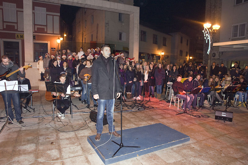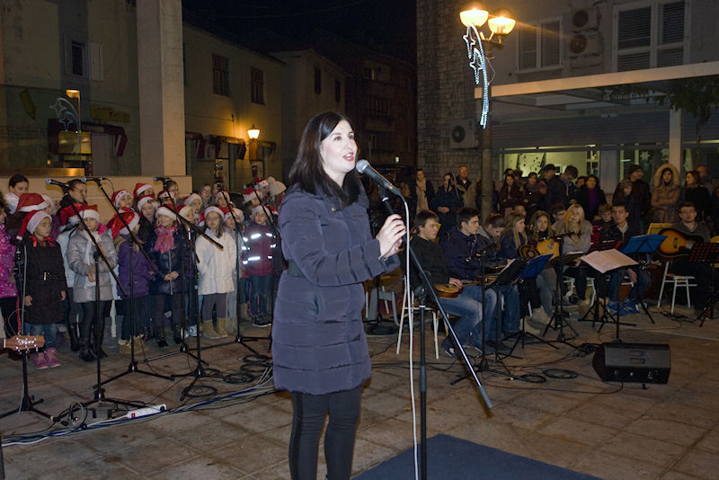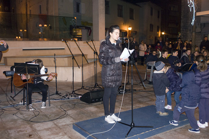 Metković, 24.12.2013. - Sinoć je na Trgu kralja Tomislava upriličen jednosatni glazbeno-recitatorski program naziva Božiću u susret. Time je nastavljena tradicija započeta prije dvije godine, s tim što je koncert održan dan ranije nego što je to bilo protekla dva puta.