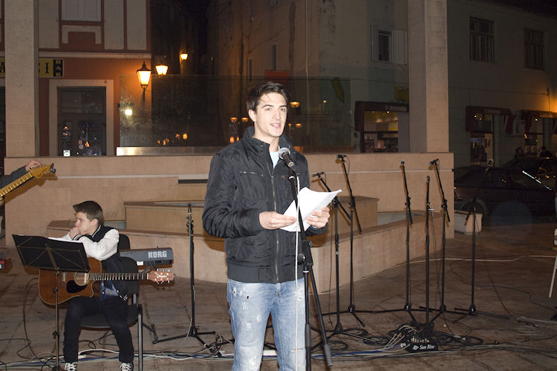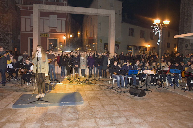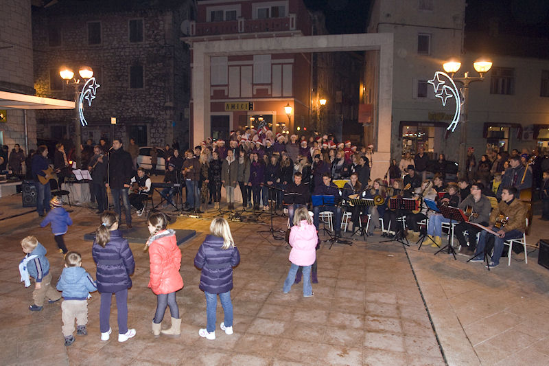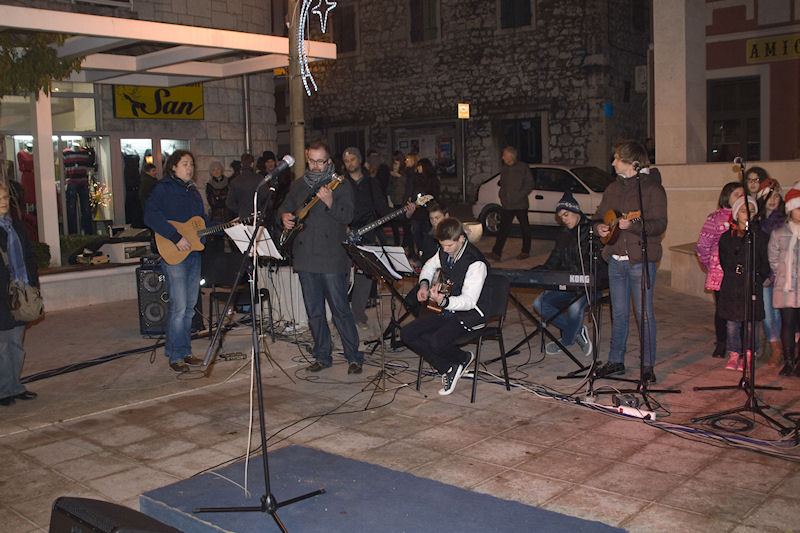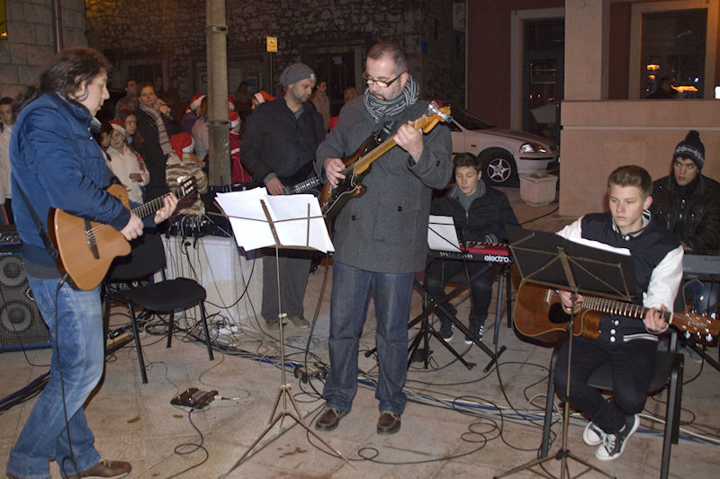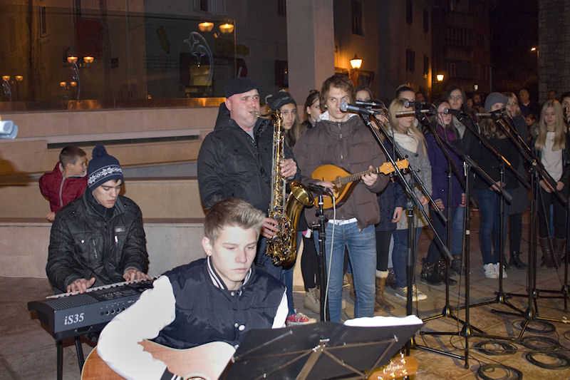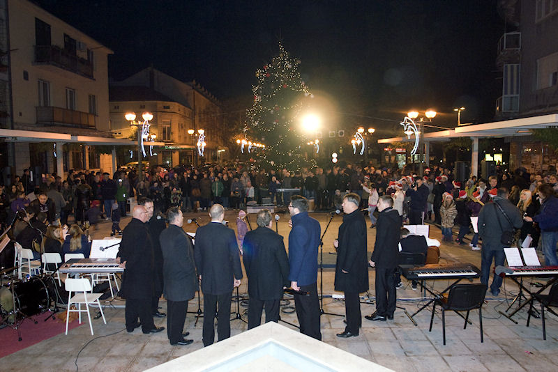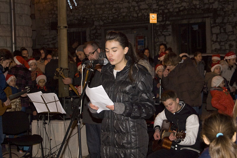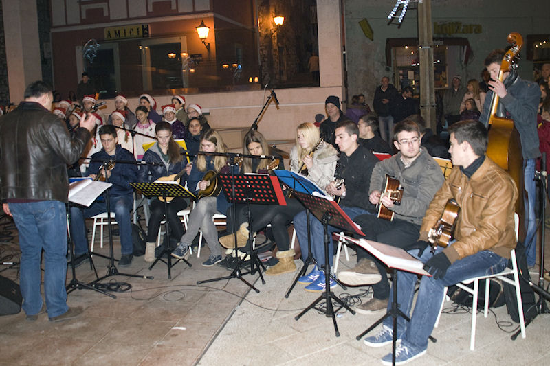 Metković, 24.12.2013. - Sinoć je na Trgu kralja Tomislava upriličen jednosatni glazbeno-recitatorski program naziva Božiću u susret. Time je nastavljena tradicija započeta prije dvije godine, s tim što je koncert održan dan ranije nego što je to bilo protekla dva puta.