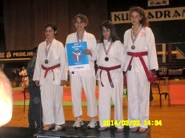 Metković, 24.3.2014. - U Splitu je jučer održan Međunarodni karate turnir Kup Jadrana 2014. na kojem je nastupilo 900 natjecatelja iz 72 kluba iz 12 zemalja. Među njima bili su i natjecatelji dvaju metkovskih karate klubova koji su u Metković donijeli dvije zlatne i četiri brončane medalje.