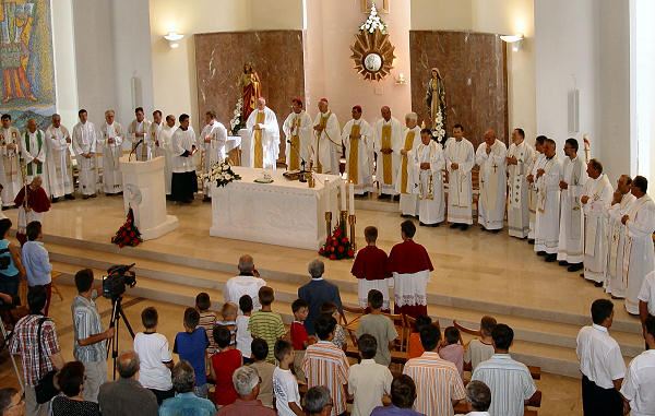 Biskupi, svećenici i vjernici  na Misi.