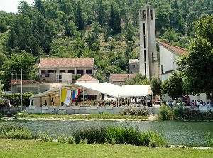 Pogled na crkvu s druge strane rijeke Misline