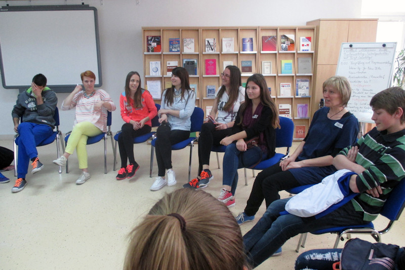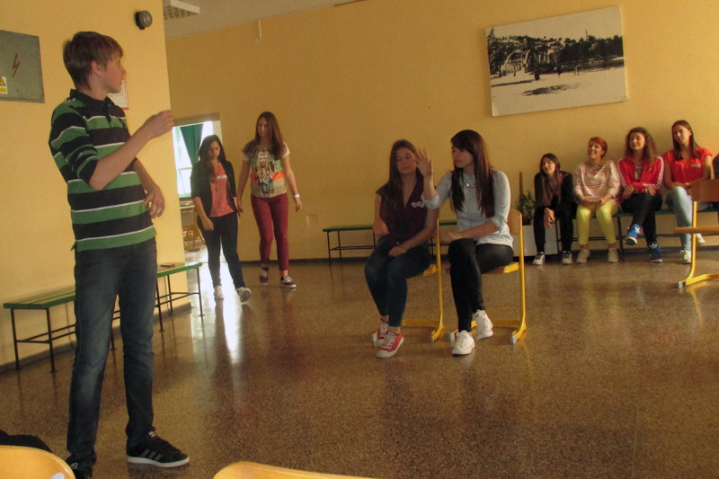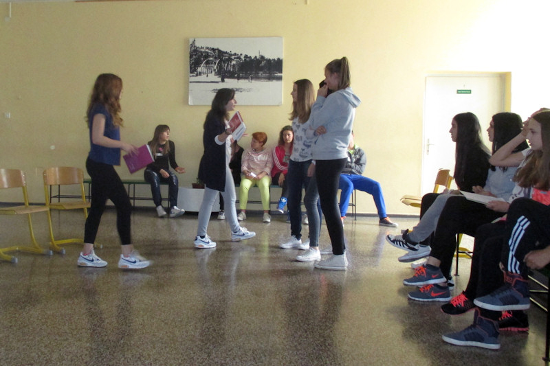 Svrha radionice bila je kako igrom postići slobodno usmeno izražavanje na njemačkom jeziku te vježbati kako povezati strani jezik s emocijama i pokretima te tako ovladati scenskim osnovama. Učenici su pomoću samostalno sastavljenih jednostavnih scena, improvizacije i predstavljanja jednih drugima, na kraju radionice dobili zanimljiv scenski kolaž, pun pokreta i riječi, koji su na kraju radnoga dana predstavili radoznaloj publici.