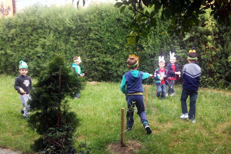 Mali vrtićani i njihove tete zajedničkim su snagama izrađivali raznolike ukrase i čestitke za Uskrs, bojali jaja, a pripremili su i predstavu Uskrsni pomagači koju su izveli svojim roditeljima. Ipak, najviše oduševljenja izazvala je potraga za skrivenim uskrsnim jajima koja je upriličena u vrtu vrtića.