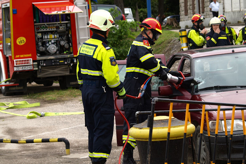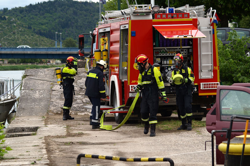 Metković, 5.5.2014. - Pripadnici Javne vatrogasne postrojbe Metković i Dobrovoljnoga vatrogasnog društva Metković jučer su prigodno obilježili blagdan Sv. Florijana, zaštitnika vatrogasaca.