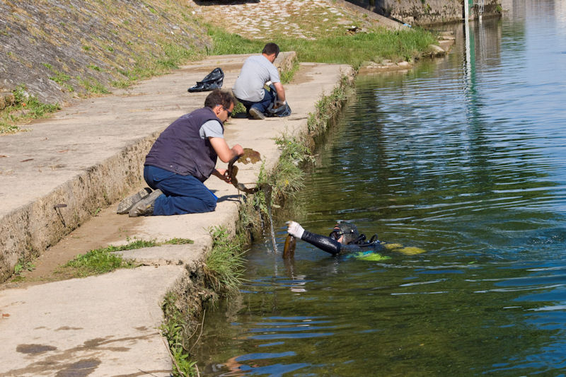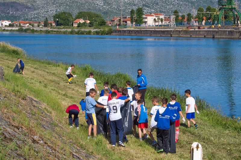 31.5.2014. - Današnja akcija Dan hrvatskih voda okupila je jutros na Velikoj rivi u Metkoviću velik broj volontera koji su nakon zajedničke fotografije pošli u čišćenje korita i obala Neretve od krutoga i biološki nerazgradivoga otpada. Čistilo se od Mosta do Veletržnice pod vodom, s vode i s kopna.