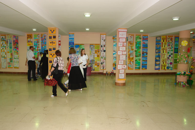 Proslava je započela u Galeriji GKS-a gdje je otvorena izložba likovnih radova učenika Škole. Tom prigodom prisutne su pozdravili autorica koncepcije izložbe učiteljica-savjetnica Dubravka Šešelj i ravnatelj Škole Petar Jakić. Uz likovne radove na izložbi su izloženi i svi pehari i priznanja koja su učenici i njihovi mentori dobili za trud i uspješan rad tijekom 35 godina, a poseban kutak dobili su i školski proizvodi poput maslinova ulja, ekosapuna i eteričnih ulja te izuzetno uspješan školski list Kreket. Koliko su svestrani, učenici su pokazali i na izložbi koja je postavljena u atriju GKS-a.