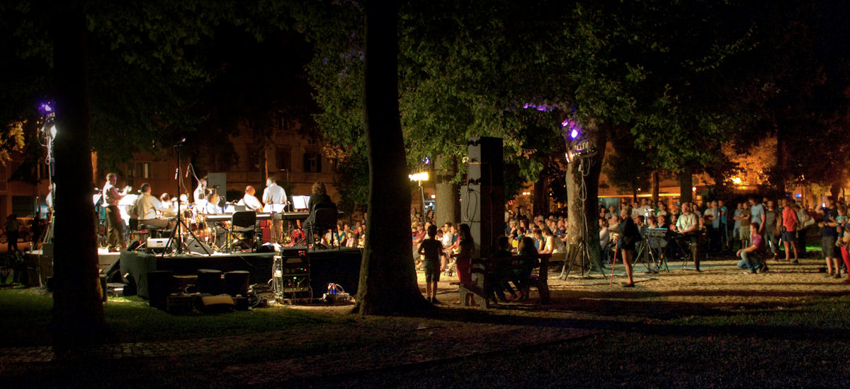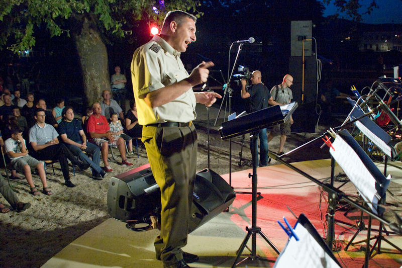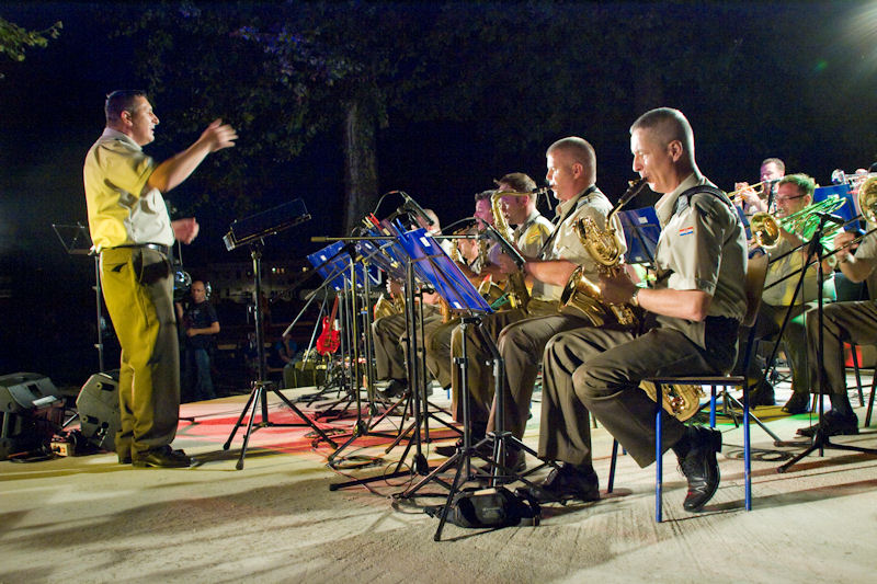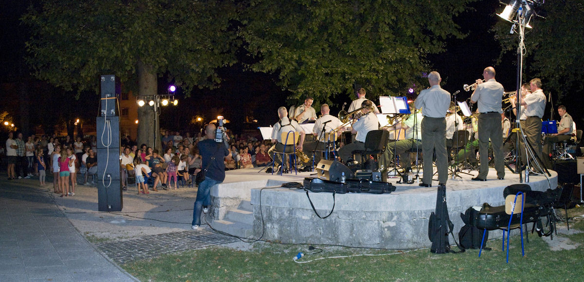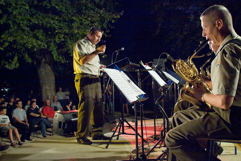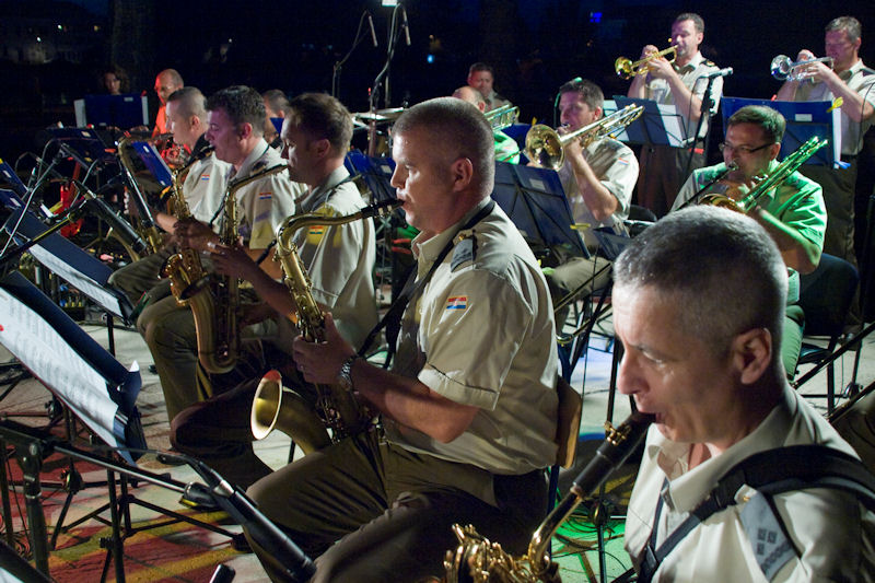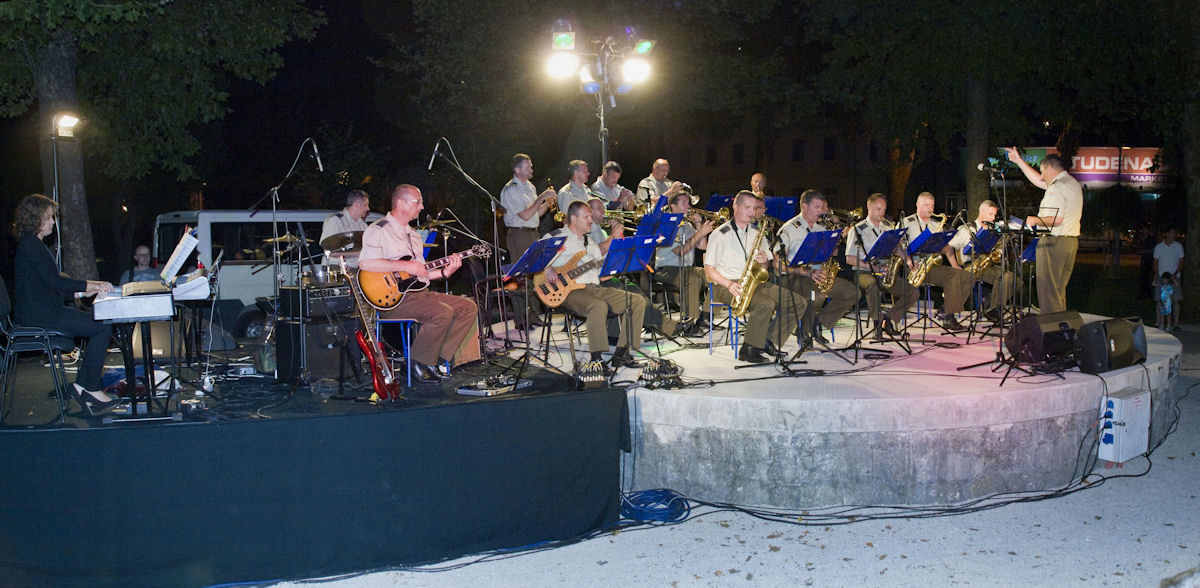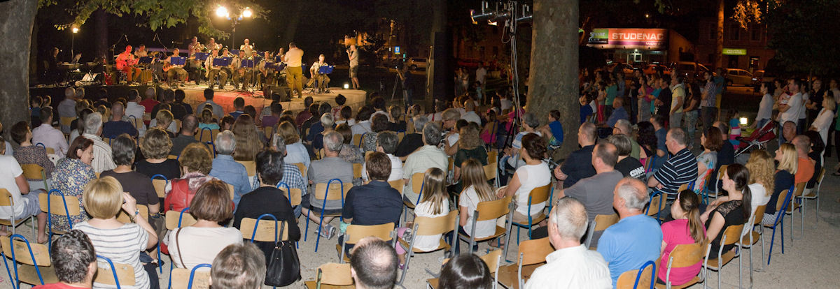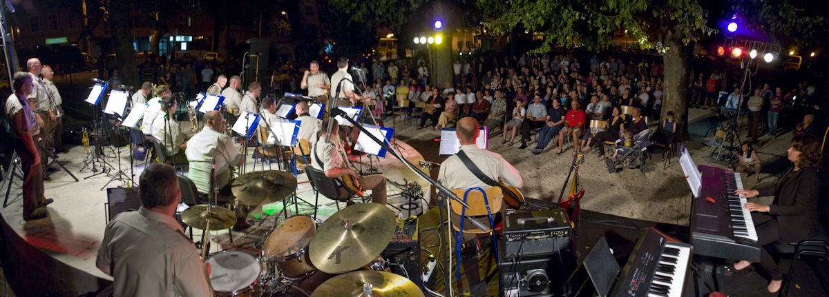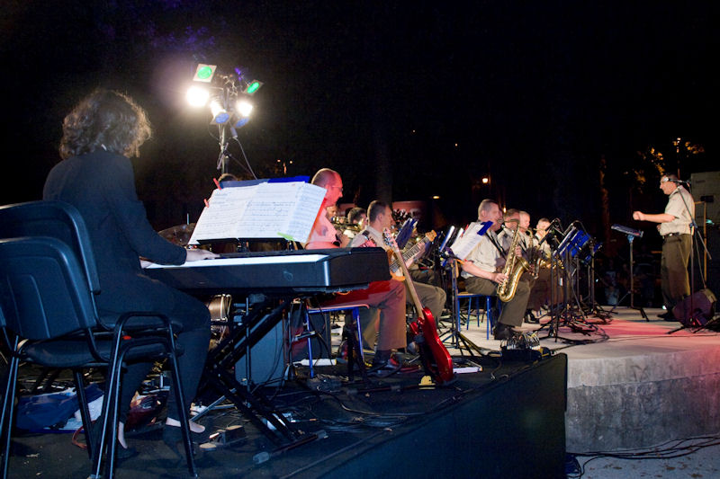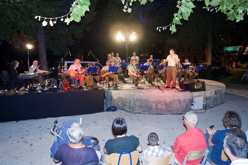 Metković, 30.6.2014. - Ovogodišnje Metkovsko ljeto sinoć je započelo nastupom Jazz orkestra Oružanih snaga RH koji je oduševio tristotinjak posjetitelja u Gradskome parku, nakon desetljeća i desetljeća ponovno otkrivenome scenskom prostoru.