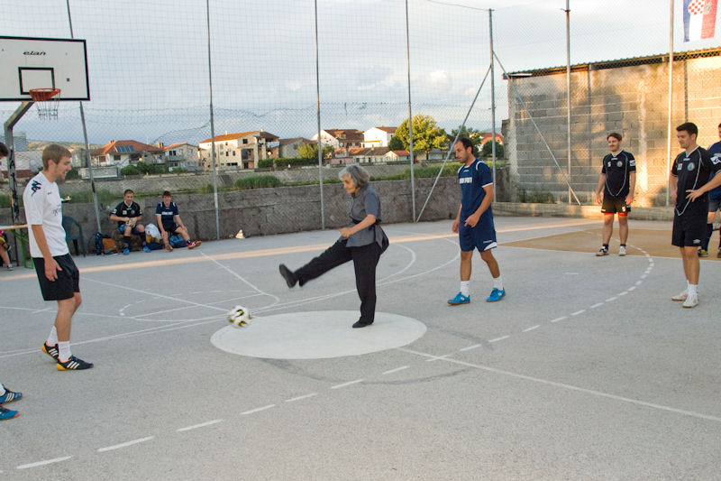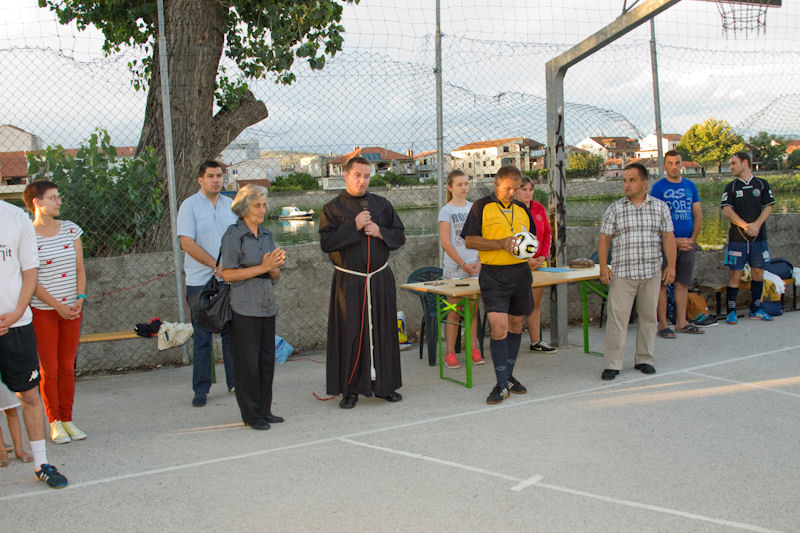 1.7.2014. - Sinoć je na ŠRC Orašina upriličeno otvorenje VI. Memorijalnog malonogometnog turnira Eugen Erjauc na kojem će nastupiti 24 muške i sedam ženskih momčadi. Nakon što je sve okupljene pozdravila Saša Galov, obratio im se zamjenik gradonačelnika Nikola Grmoja, a potom je uz molitvu odrješenja za pok. hrvatskog branitelja Eugena Erjauca sve sudionike blagoslovio fra Lukuca Vojković. Prvi udarac loptom pripao je pokojnikovoj majci Ruži Erjauc.