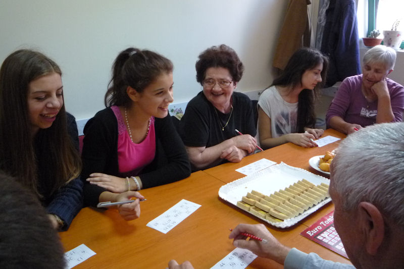Iznenađenje su im priredili učenici Srednje škole Metković sa svojom profesoricom Karatrinom Barišić. Pjesmom i kolačima čestitali su starijima njihov dan i pridružili im se u aktivnostima. Zajednički su zaigrali tombolu, napeto iščekujući tko će dobiti cinkvinu a tko tombolu. Zanimljivo je da je većini mladih to bilo prvi put. Nagrade su, naravno, bili predmeti izrađeni na radionicama Udruge. Na kraju je medicinska sestra volonterka Josipa Kolovrat svima kontrolirala krvni tlak. Veselo i poletno ozračje vratilo je starije u njihove mlade dane koji, kako kažu, i nisu bili tako davno.