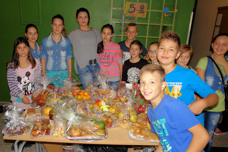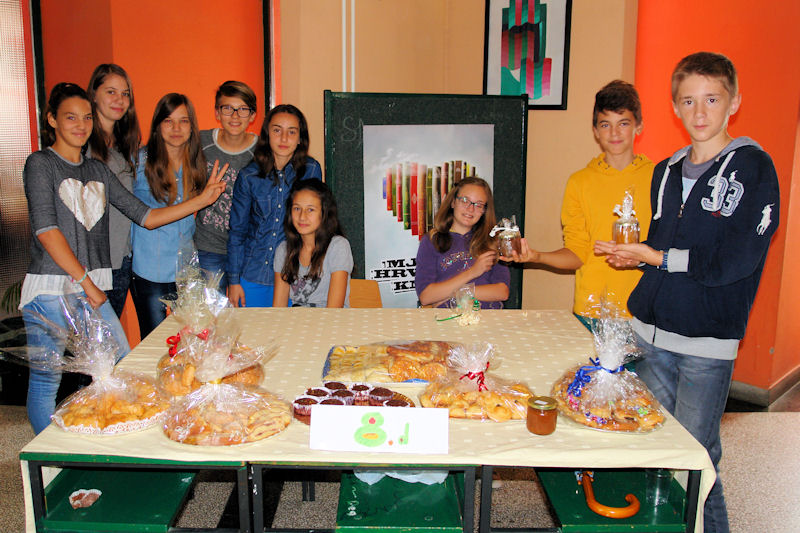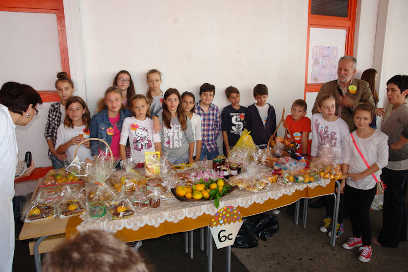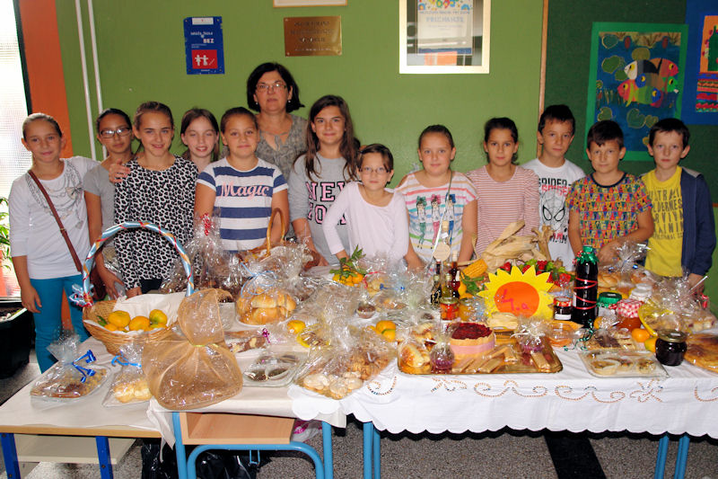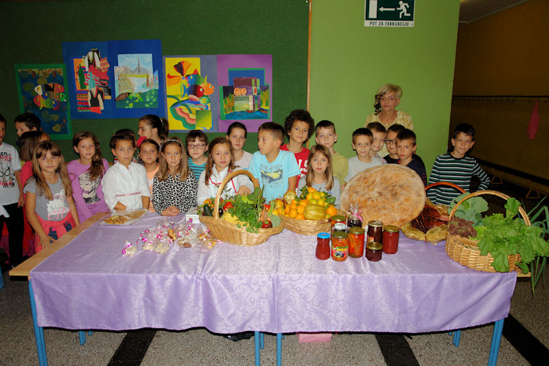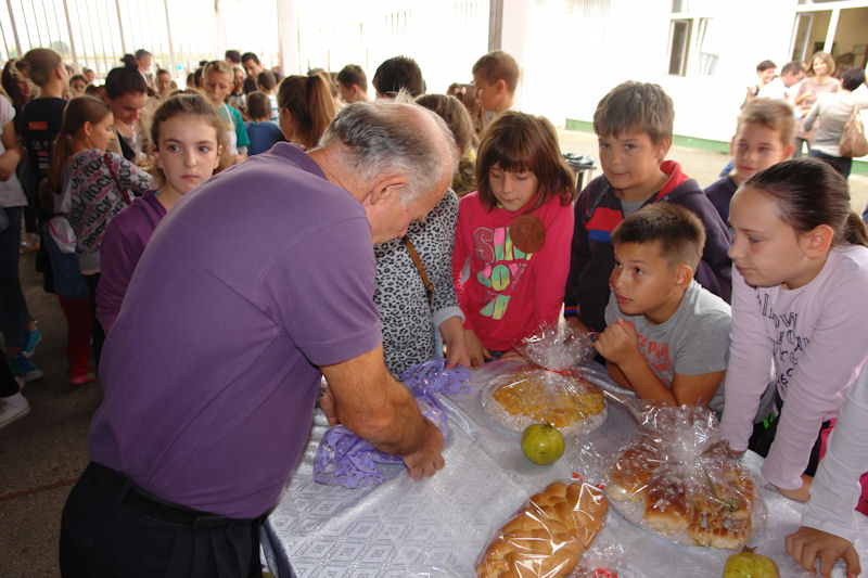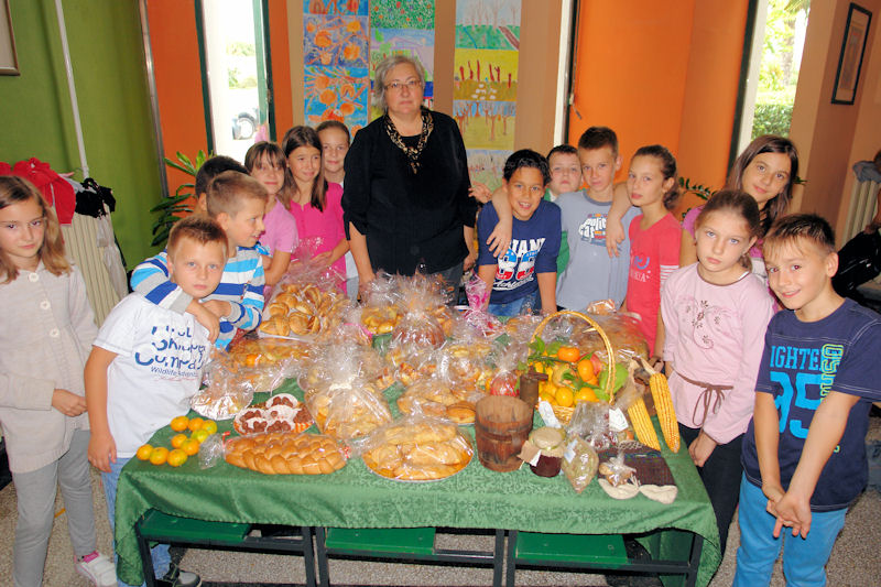 17.10.2014. - Jučer je OŠ don Mihovila Pavlinovića obilježila Dane kruha. Već tradicionalno, upriličena je prigodna prodajna izložba kruha, peciva, različitih slastica te darova prirode, a zbog lošeg vremena izložba je održana u atriju škole i na dijelu školskoga dvorišta. Blagoslov darovima prirode udijelio je sužupnik Župe sv. Nikole don Senko Antunović.