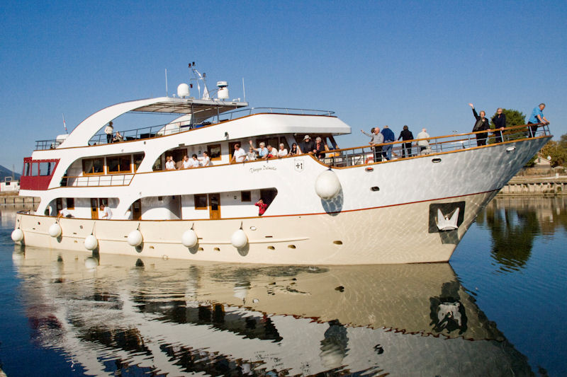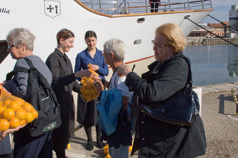 21.10.2014. - S Male je rive jučer svečano ispraćen minikruzer Thurgau Dalmatia koji je, dovozeći po tridesetak švicarskih turista, od 4. svibnja u Metković uplovio 25 puta. Svakome je gostu darovana vrećica s neretvanskim mandarinama, a prigodan program izveli su im članovi KUD-a Župa Gospe Snježne iz Vida. Ispraćaj je u suradnji s turističkim djelatnicima organizirala Turistička zajednica Grada Metkovića.