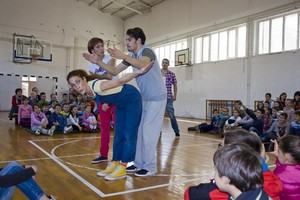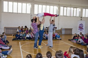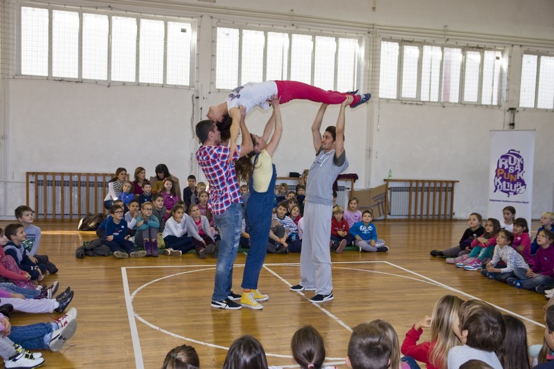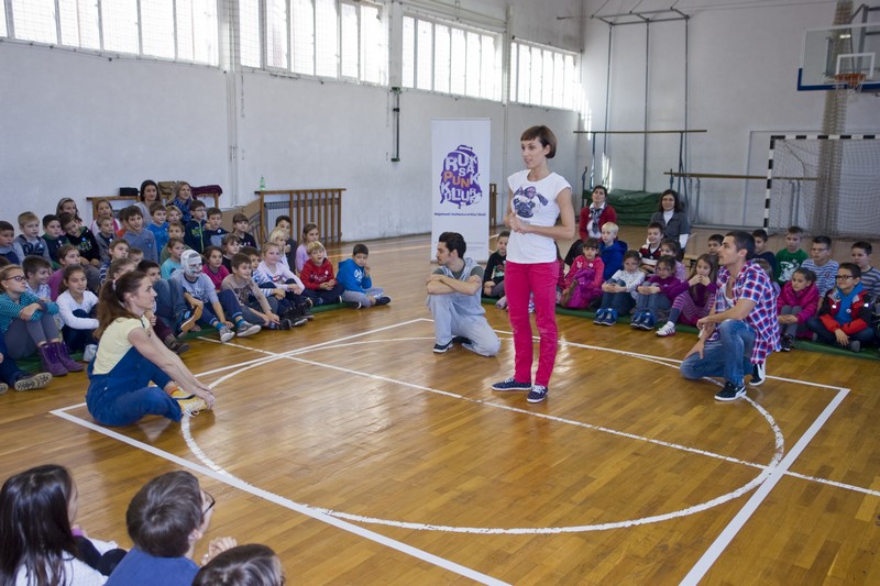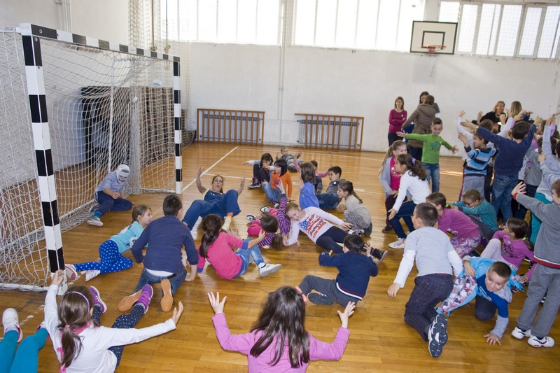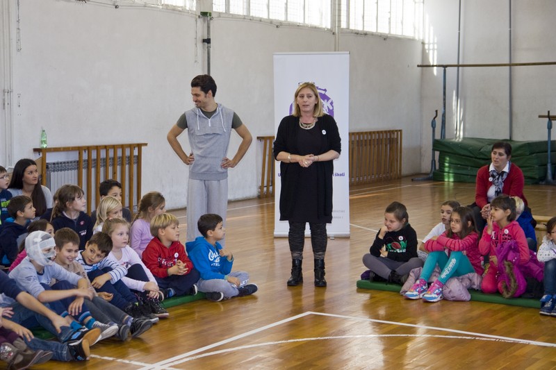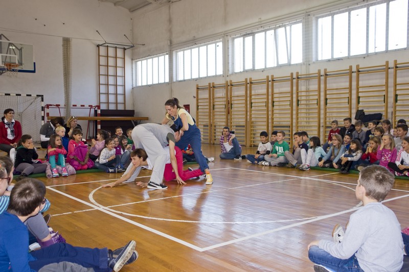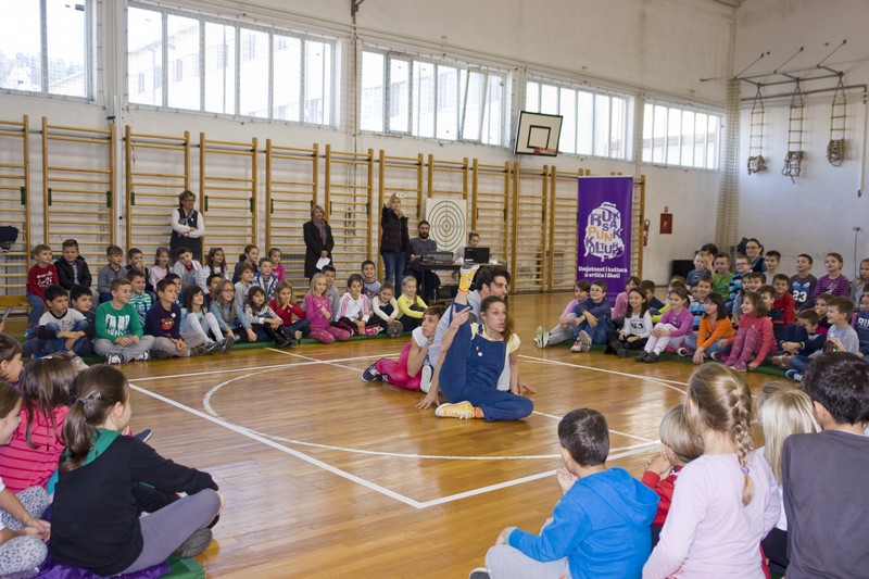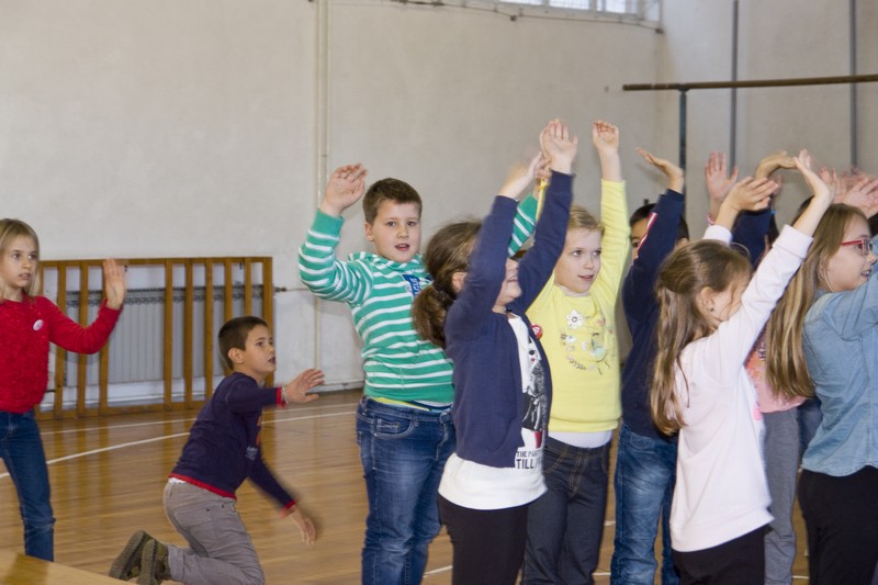 9.12.2014. - Jučer su glumci Kazlišta Trešnja za učenike prvih i drugih razreda te područnih škola OŠ Stjepana Radića izveli predstavu Tri skockana prašćića, nakon koje su s okupljenim učenicima održali i plesno-dramsku radionicu.