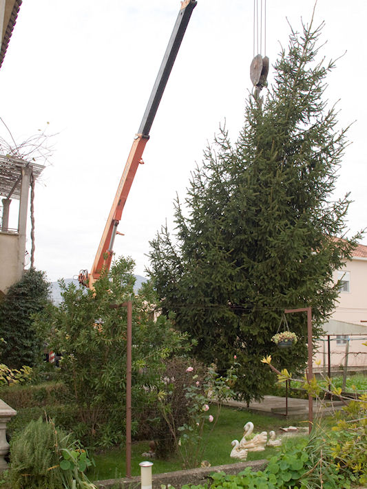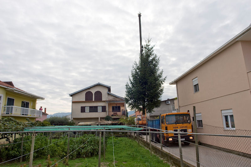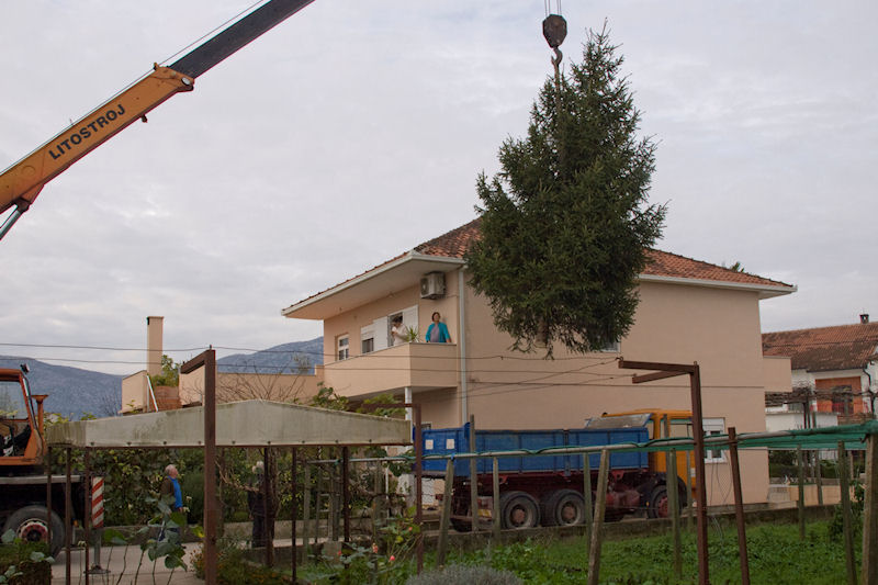 Jelu je prije petnaestak godina pred Božić kupila obitelj Davora Dominikovića i nakon toga ju je posadila u svoj vrt. Ove su godine odlučili jelu darovati svojim sugrađanima za Božić pa je Grad Metković angažirao JVP Metković te veliku dizalicu i kamion kako bi jela bila ispiljena i prenesena na Trg. Uime svih naših sugrađana obitelji Dominiković zahvaljujemo na daru.