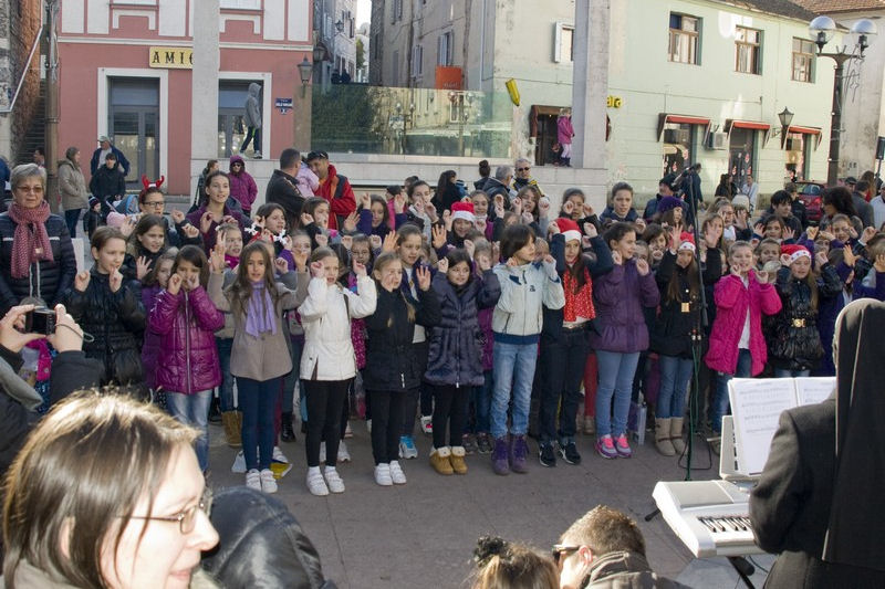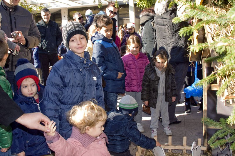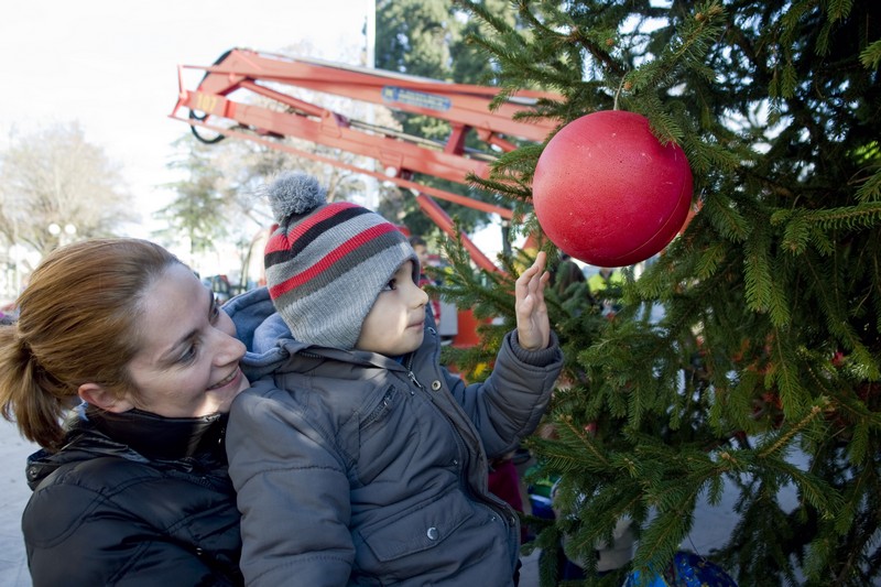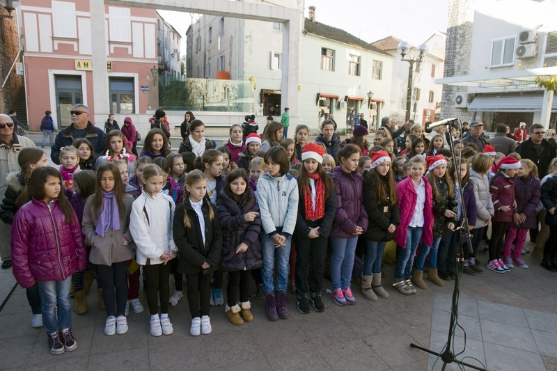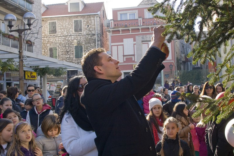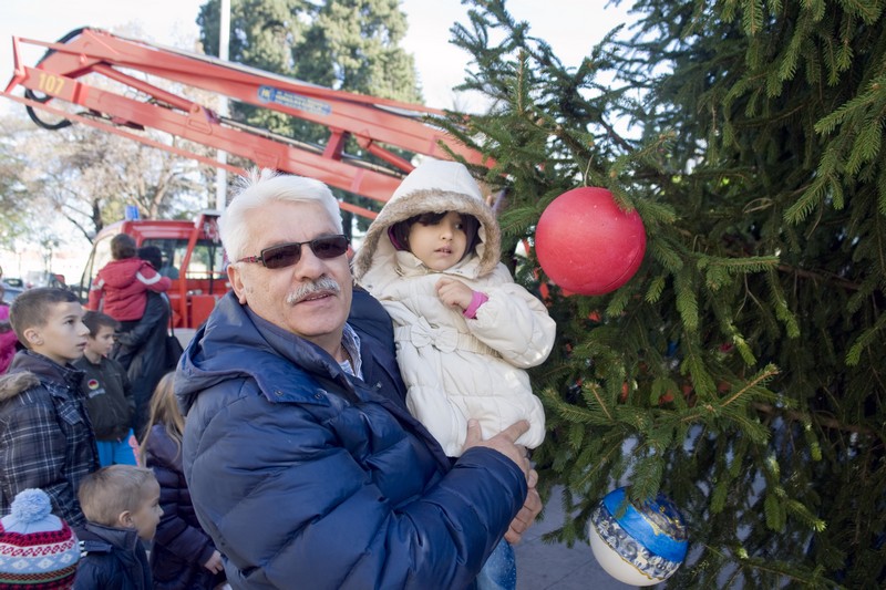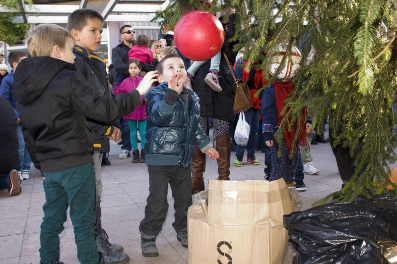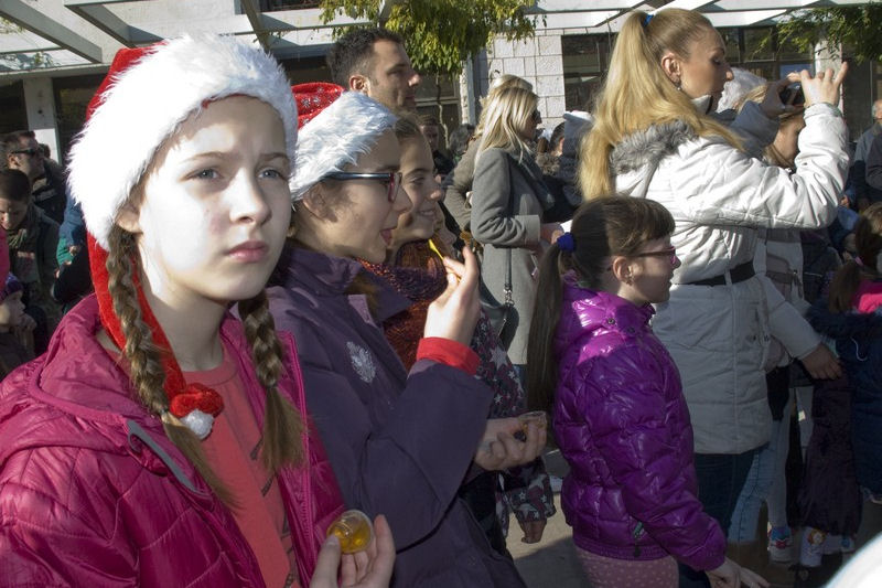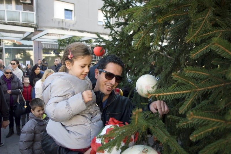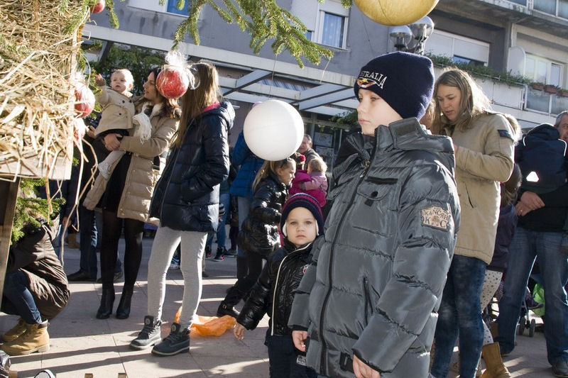 13.12.2014. - Na Trgu kralja Tomislava jutros je bilo jako veselo, a kako i ne bi kada se tamo skupilo preko stotinu djece sa svojim roditeljima, bakama i djedovima koja su došla okititi veliku božićnu jelu.