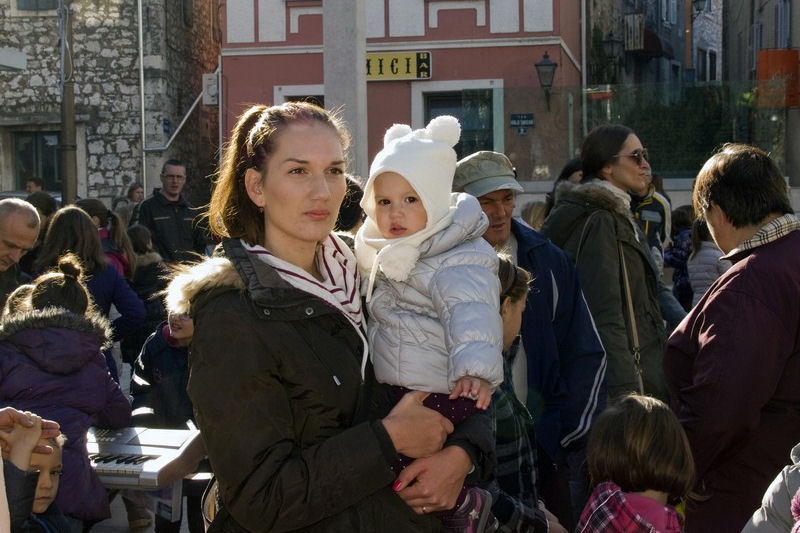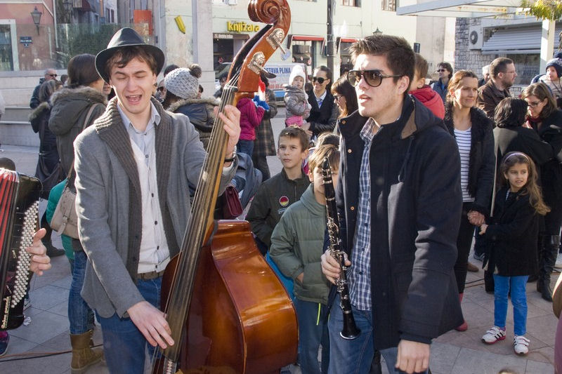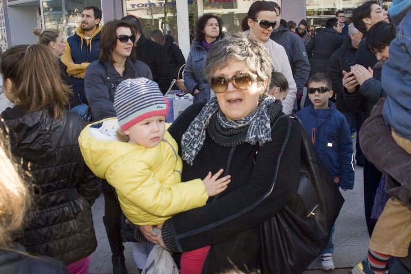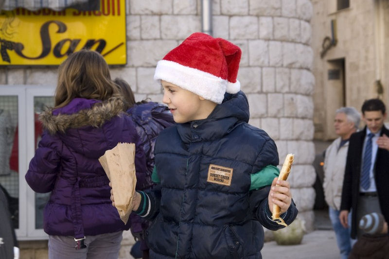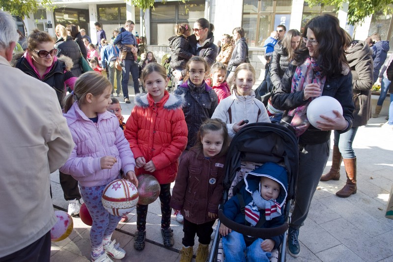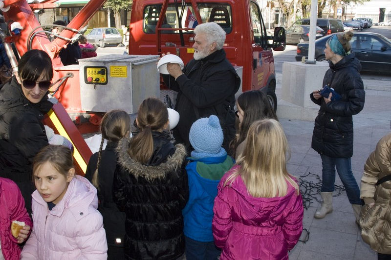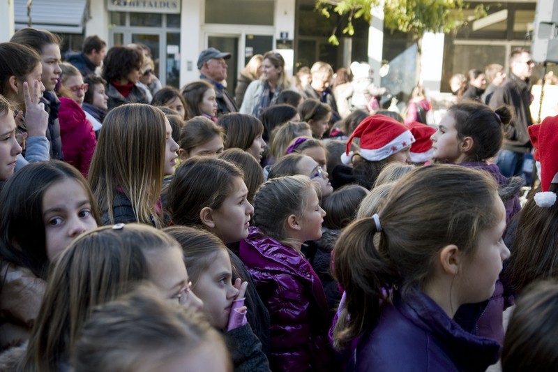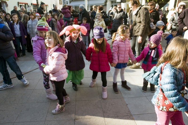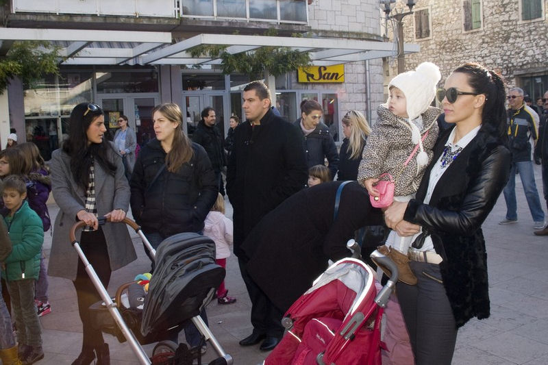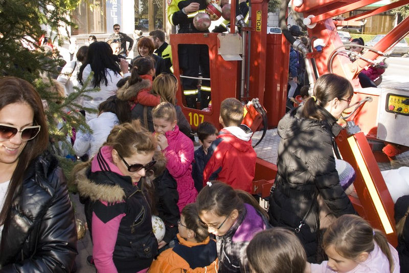 13.12.2014. - Na Trgu kralja Tomislava jutros je bilo jako veselo, a kako i ne bi kada se tamo skupilo preko stotinu djece sa svojim roditeljima, bakama i djedovima koja su došla okititi veliku božićnu jelu.