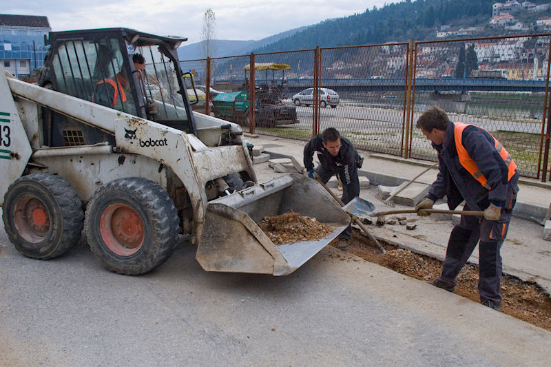 Danas smo na gradilištu zatekli radnike Asfalt-inženjeringa kako vade rigole (ploče kanalice) za oborinsku vodu koje nisu bile postavljene prema pravilima struke pa su se oštetile cijelom dužinom trase. Usporedo s time postavljaju se nove ploče, koje su, čini se i kvalitetnije. Budući da na dijelu te ulice nije dobro izveden ni nagib, prije nego se položi završni, habajući sloj asfalta to će se rješavati asfaltnim međuslojem.