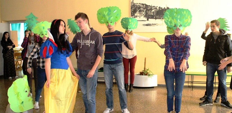 20.12.2014. - Maturanti IV. B razreda Gimnazije Metković u svojoj su školi s razrednicom Svjetlanom Bebić upriličili bajku Snjeguljica i sedam patuljaka , koju su pred same zimske školske praznike izveli na njemačkom i hrvatskom jeziku.